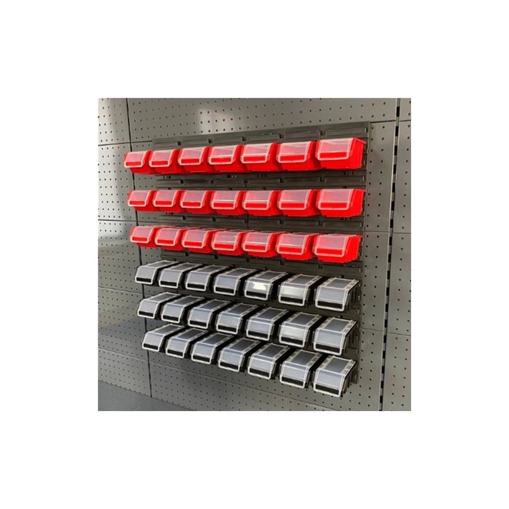 Полиця Kistenberg KS_kit41 має 46 відділень, що забезпечує достатньо місця для організації різних видів шурупів. Виготовлена з якісного пластику, вона є легкою та зручною у використанні. Завдяки компактним розмірам, підвісна дошка легко вписується в будь-який робочий простір, а її надійна конструкція гарантує довговічність. Виберіть Kistenberg KS_kit41 для ефективного зберігання інструментів та підтримання порядку у вашій майстерні.