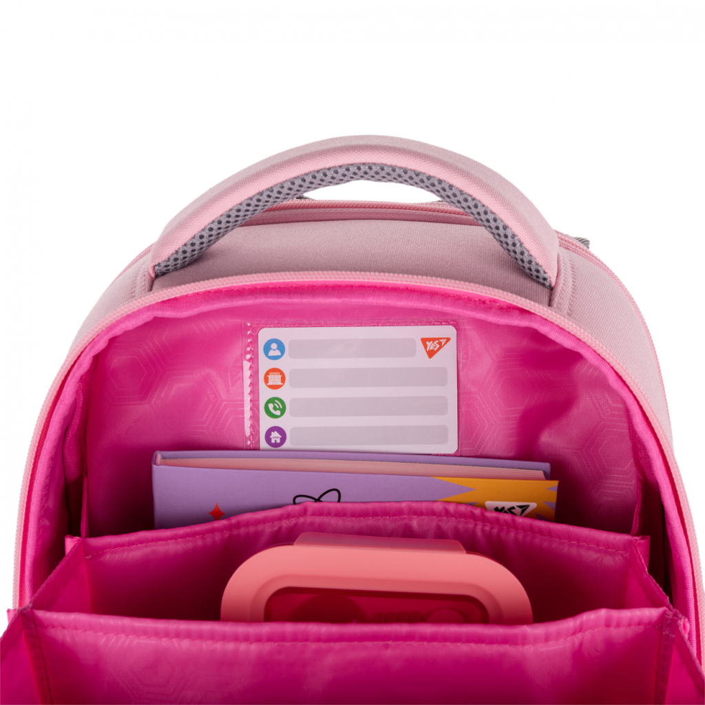 Серед особливостей портфеля варто відзначити світловідбиваючі елементи для безпеки дитини в темряві, регульовані лямки для комфортного носіння, а також потайну кишеню на спинці для зберігання цінних речей. Нагрудний ремінь і ключниця-пружинка додають додаткову функціональність. Портфель представлений у стильному поєднанні сірого та рожевого кольорів, що робить його не тільки практичним, але й модним аксесуаром для кожної дівчинки.