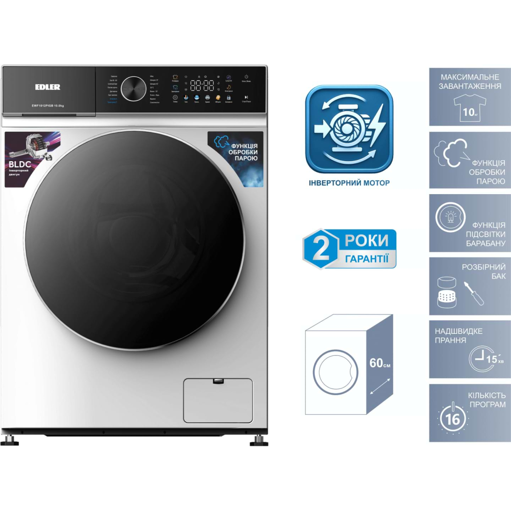 Пральна машина Edler EWF1012PIGB – це сучасний автоматичний пристрій, що поєднує в собі інноваційні технології та зручність використання. Завдяки інверторному двигуну, вона забезпечує високу ефективність прання та низьке споживання електроенергії. Окремостояча конструкція та фронтальне завантаження роблять її ідеальним вибором для будь-якого дому.