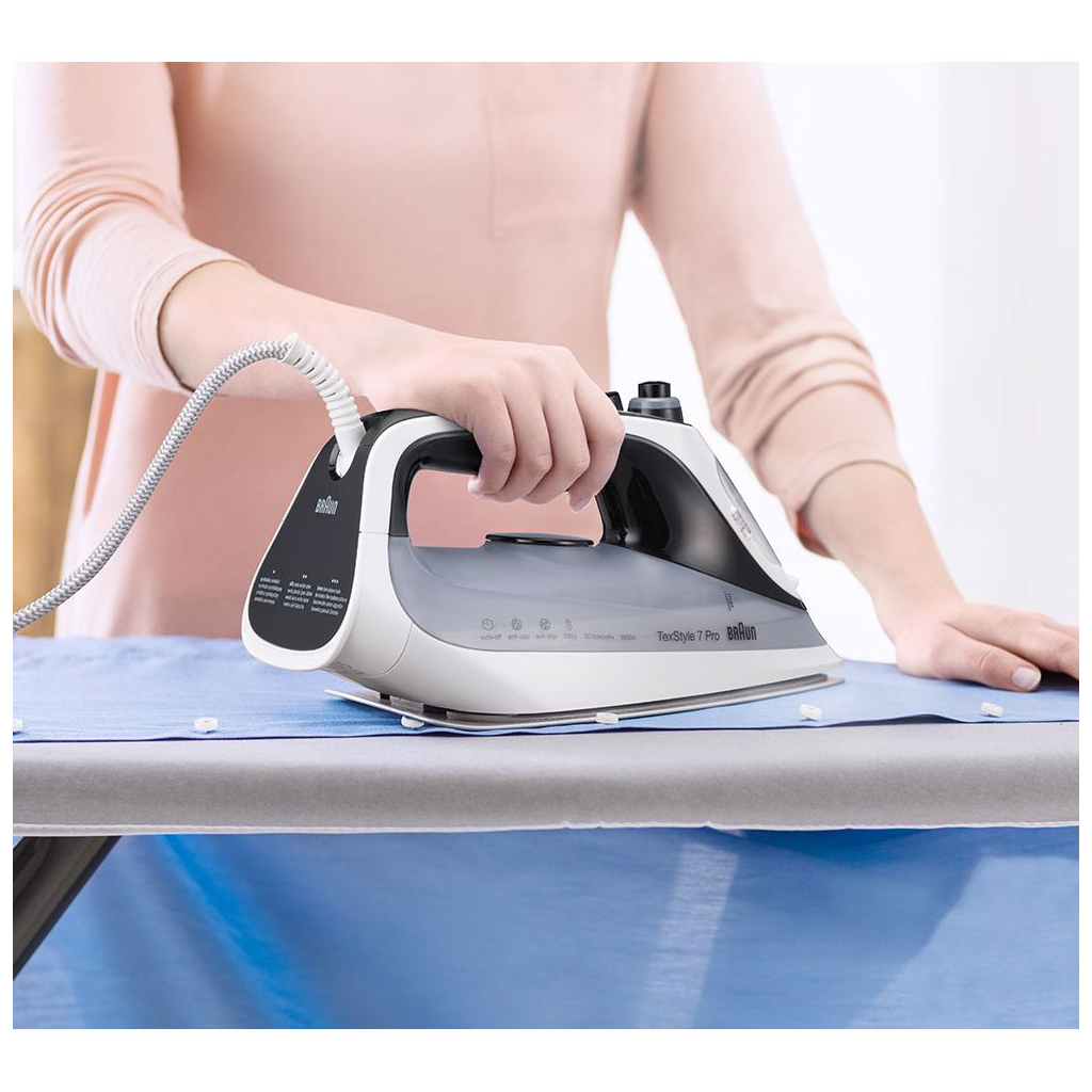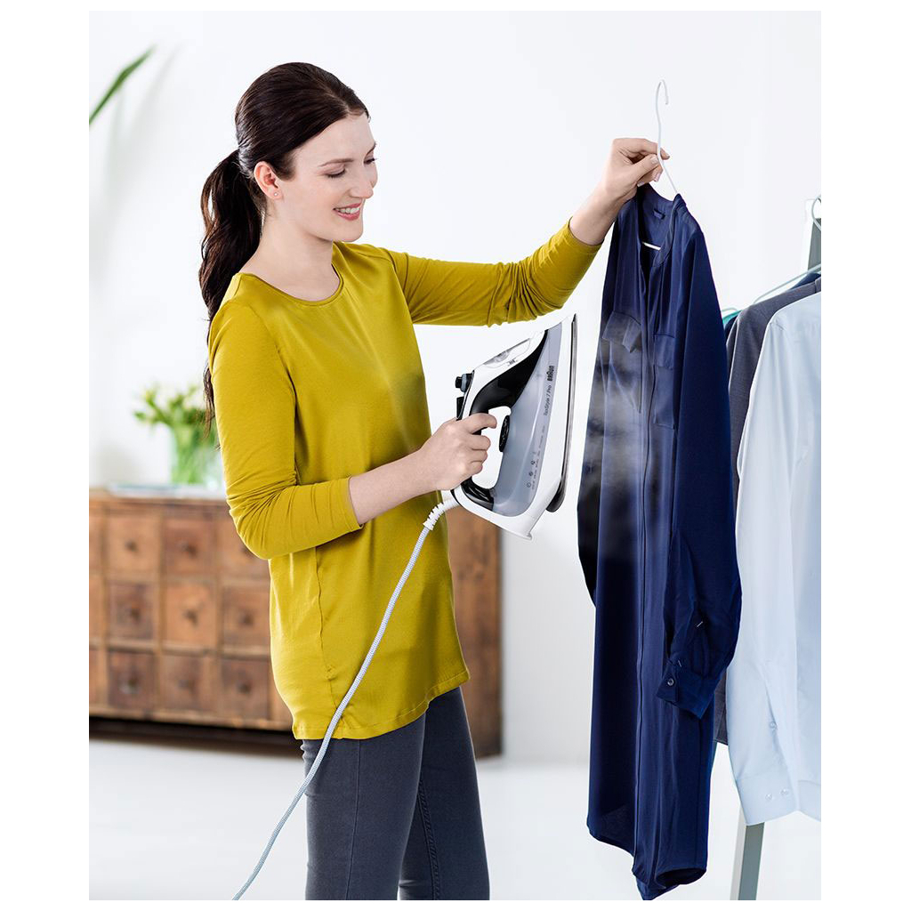 Праска Braun SI 7149 WB має ряд особливостей, які роблять її використання зручним та безпечним. Система автоматичного відключення забезпечує додаткову безпеку, а система самоочищення спрощує догляд за пристроєм. Протикрапельна система запобігає появі плям на одязі, а технологія freeglide 3 дозволяє легко ковзати по тканині. Праска також підходить для використання з водопровідною водою, що робить її ще більш практичною.