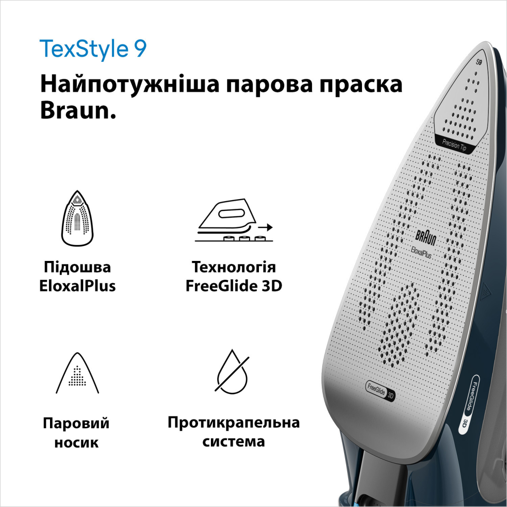 Праска Braun SI 9682 DB (SI9682DB) – це потужний інструмент для ідеального прасування, розроблений для максимальної продуктивності. Завдяки потужності 3200 Вт та високій подачі пари, ви зможете досягти оптимальних результатів на будь-яких тканинах. Парова праска TexStyle 9 SI 9682 DB є найпотужнішою паровою праскою від Braun, що забезпечує швидке і легке прасування.