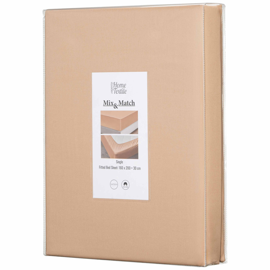 Простирадло Ardesto на резинці Mix&Match, 100% бавовна, сатин бежевий 160х200+30 см (ART1620FSI)