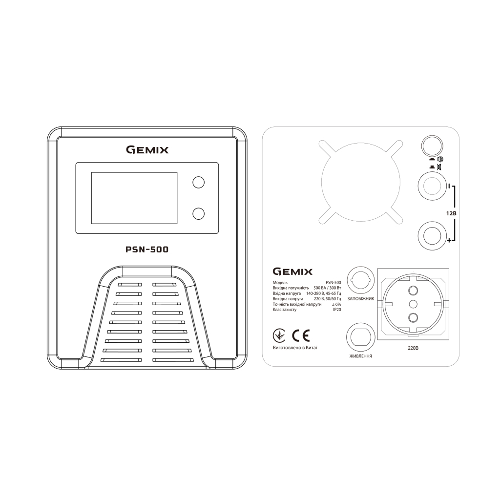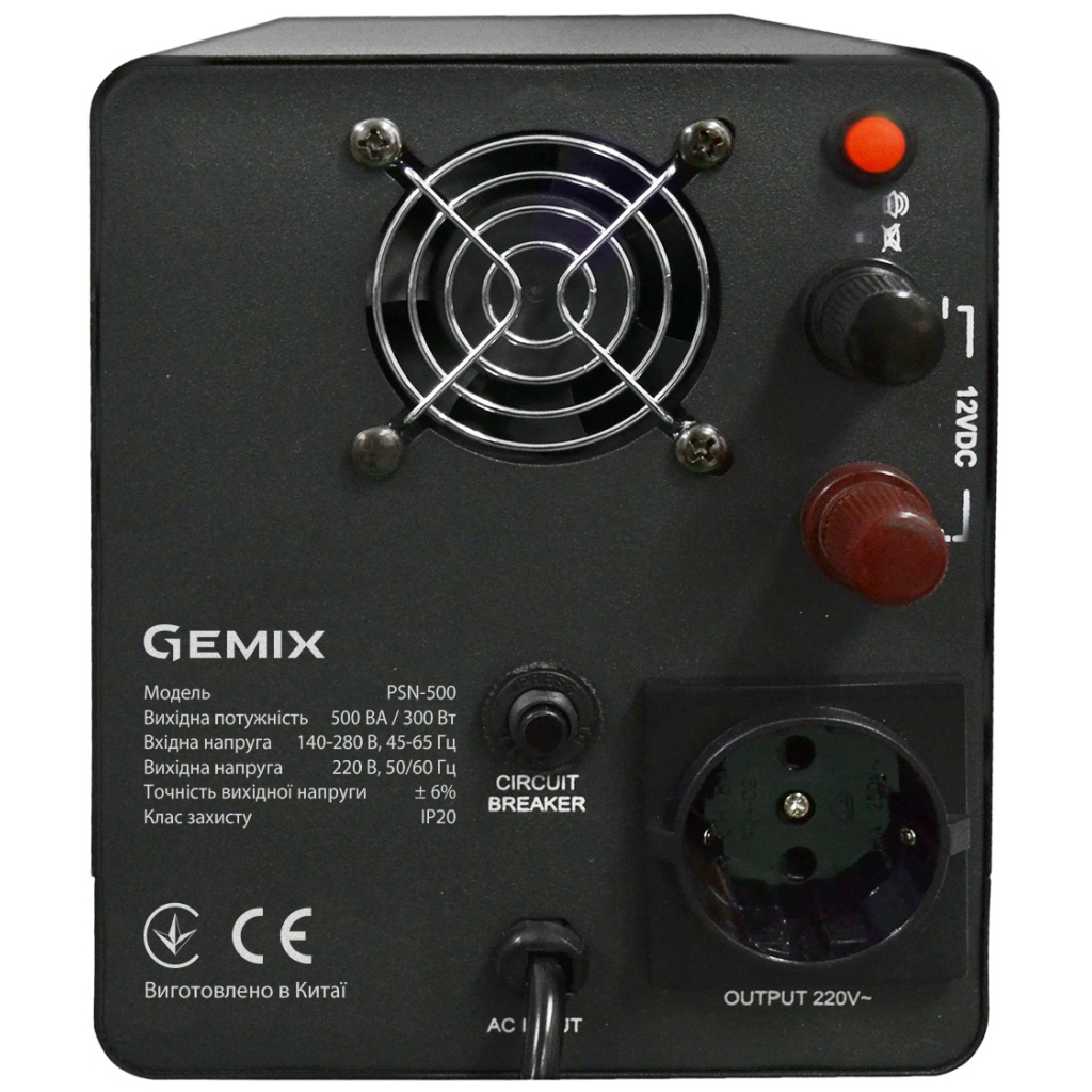 Лінійно-інтерактивне джерело безперебійного живлення Gemix PSN-500 з вихідною напругою у формі чистої синусоїди.