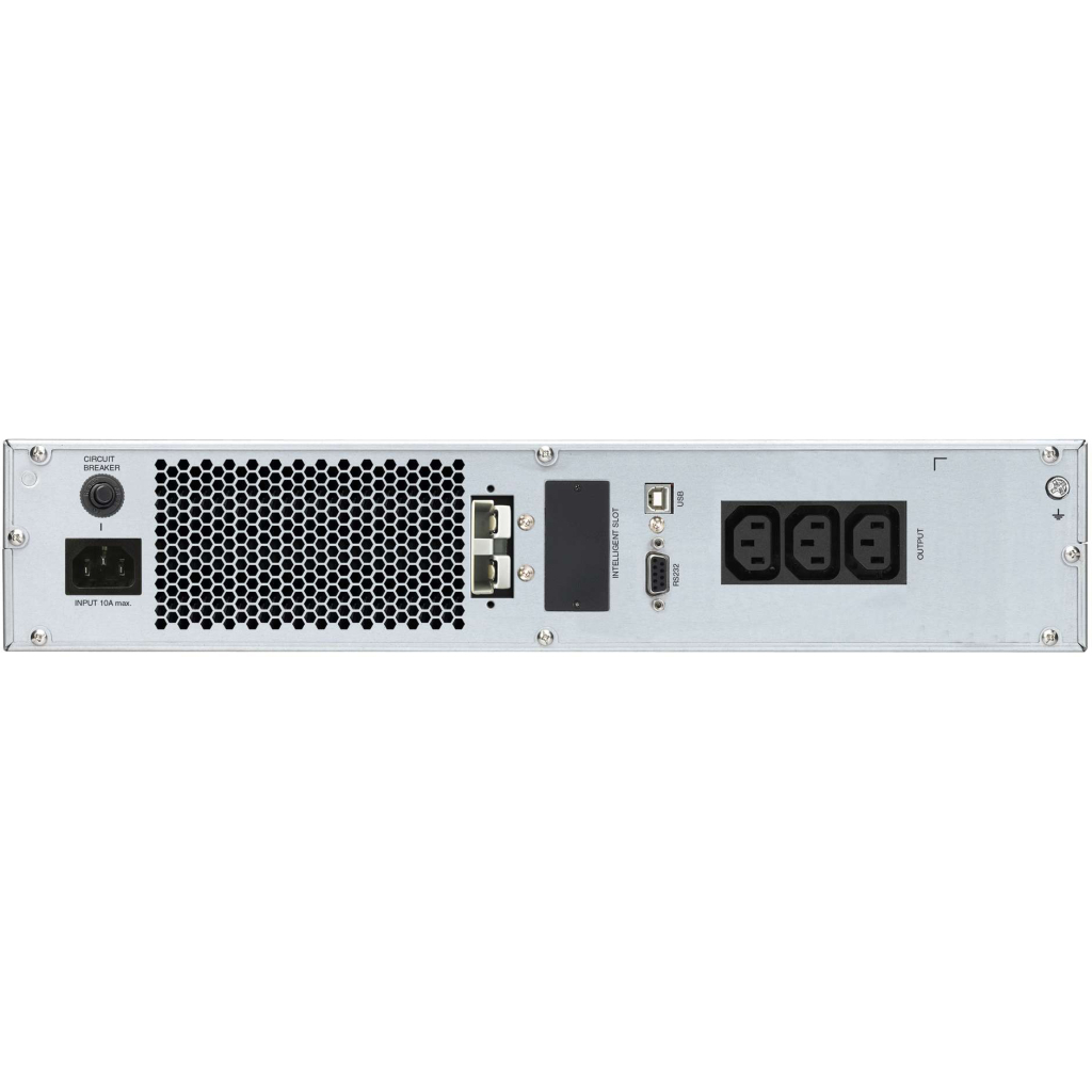 Основні технічні характеристики включають потужність 800 Вт (1000 ВА), вхідну напругу від 110 до 300 В, а також можливість підключення зовнішньої акумуляторної батареї (опція). Пристрій оснащений трьома розетками IEC 320 C13, має час переходу на батарею всього 10 мс, а також інтерфейси SmartSlot та RS-232 для зручного підключення.