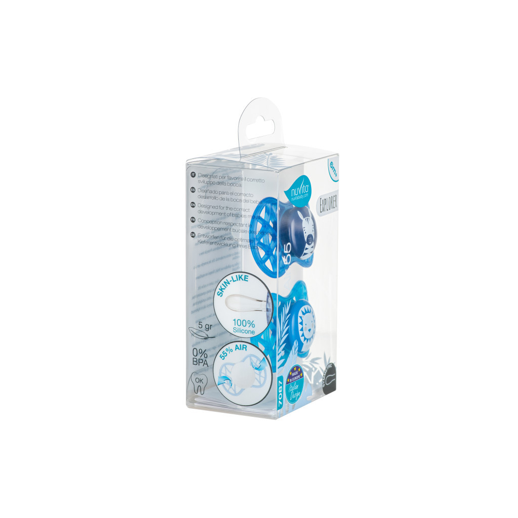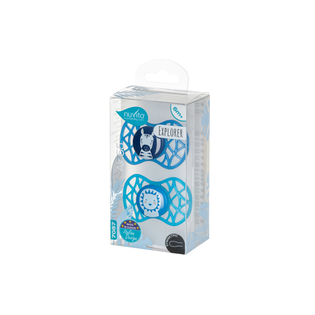 Пустушка Nuvita Air55 Explore 6m+ симетрична (NV7087M) – це ідеальний вибір для вашого малюка. Пластина соски на 55% складається з повітря, що забезпечує майже повну аерацію області навколо рота. Це допомагає уникнути скупчення слини, яка може подразнювати шкіру.