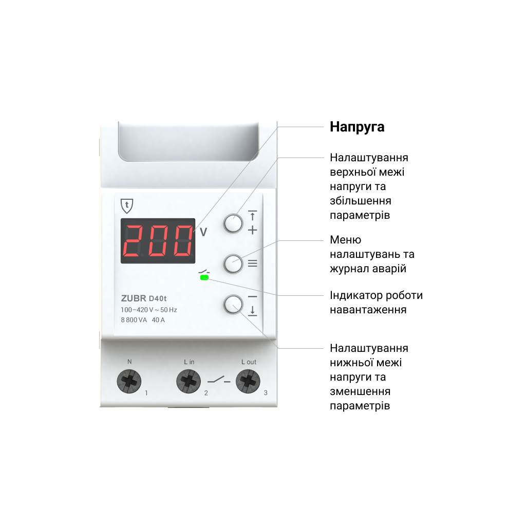 Завдяки функції TrueRMS, реле з високою точністю вимірює напругу, знижуючи вплив мережевих перешкод. Програмування дозволяє встановлювати затримку вмикання навантаження від 3 до 600 секунд, що особливо важливо для обладнання, чутливого до перепадів, як-от холодильники. Реле також має термозахист, що активується при досягненні 80 °С, подовжуючи термін служби пристрою.