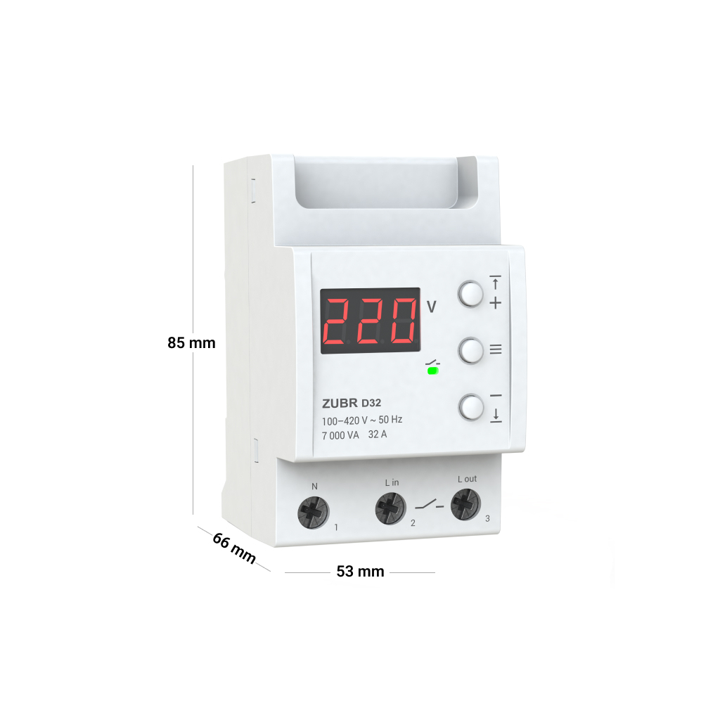 Реле напруги ZUBR D32 – надійний пристрій для захисту електричних мереж від перепадів напруги. Завдяки допустимій потужності до 5600 Вт, воно ідеально підходить для використання в побутових та промислових умовах, забезпечуючи стабільну роботу електроприладів.