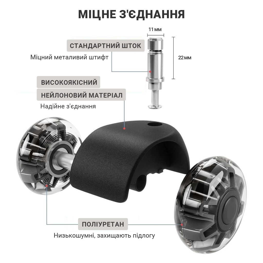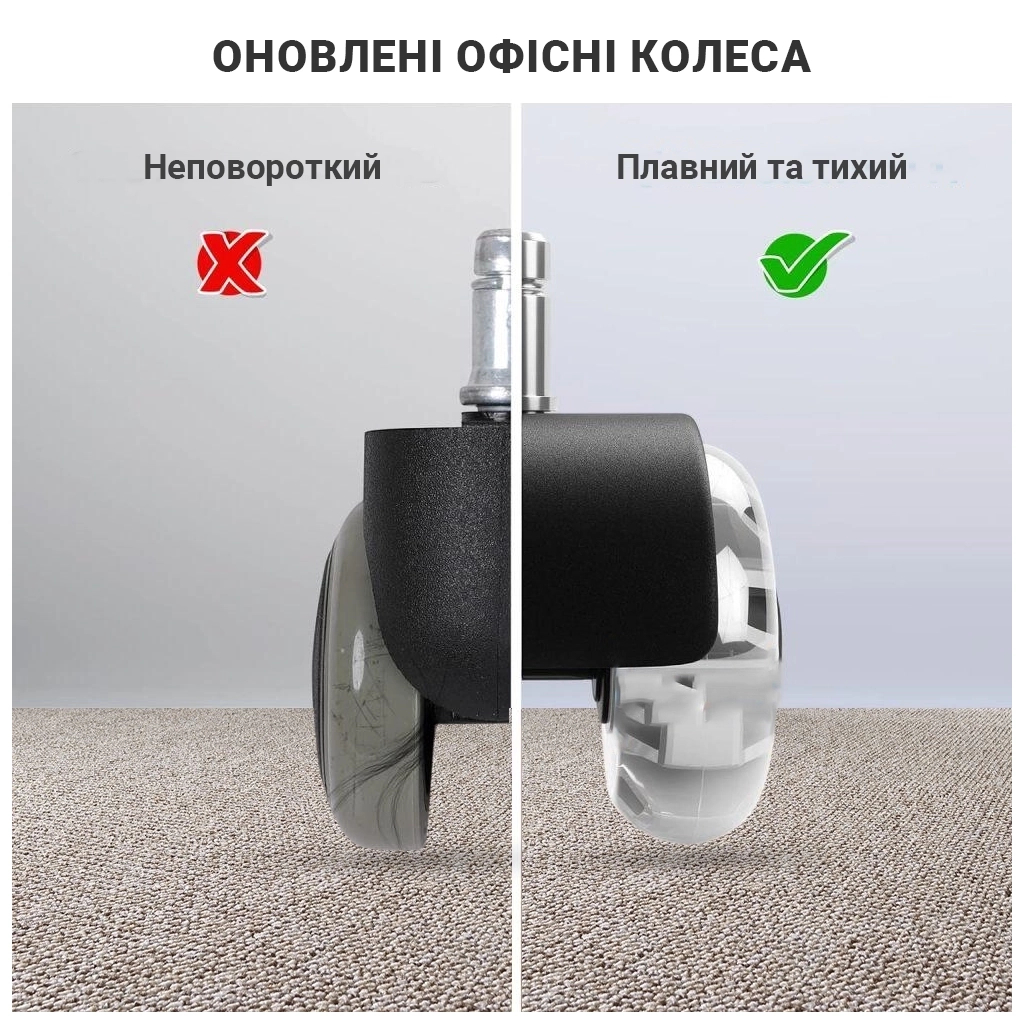 - Комфортне використання: працюйте, відпочивайте або грайте без зайвих шумів — коліщата розраховані на стабільну та комфортну експлуатацію в будь-яких умовах: удома чи в офісі.