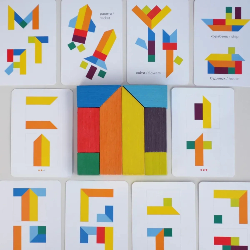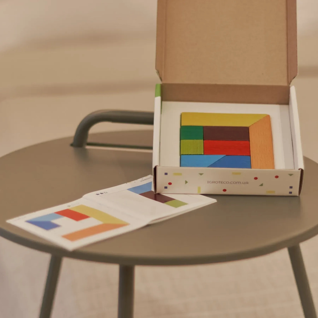 Ця розвиваюча іграшка включає в себе картки із завданнями, які допоможуть дітям вчитися граючи. Використання натуральних матеріалів гарантує безпеку для здоров'я дитини. Головоломка Танграм не лише розважає, але й навчає, що робить її незамінним елементом у розвитку вашої дитини.
