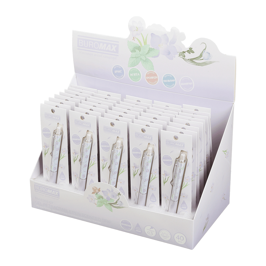 Ручка гелева Buromax автоматична BLOSSOM – це ідеальний інструмент для тих, хто цінує комфорт та стиль під час письма. Завдяки автоматичному механізму, ви зможете легко та швидко використовувати ручку, а ароматний грип додасть приємні нотки до вашого письмового процесу. Товщина лінії 0.5 мм забезпечує чіткість і точність, що робить цю ручку ідеальною для записів, малюнків та творчих проектів.