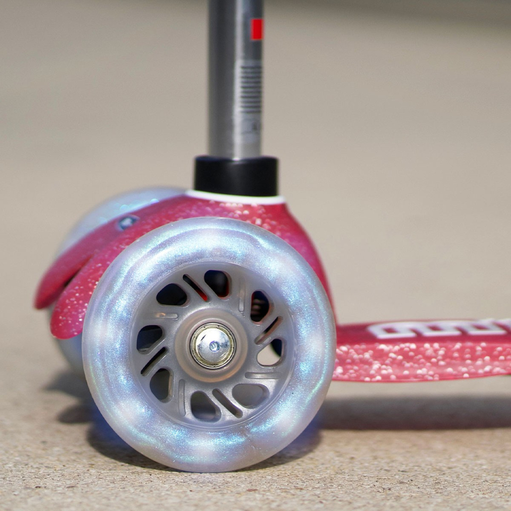 Самокат Micro Mini Deluxe Fairy Glitter LED Рожевий (MMD208) – ідеальний вибір для дітей від 2 років, які прагнуть до активного відпочинку. Цей триколісний самокат забезпечує стабільність і безпеку під час катання, а яскравий рожевий колір з глітером робить його ще більш привабливим для маленьких користувачів.