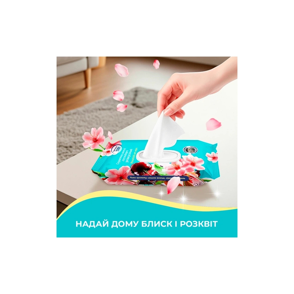 Універсальні вологі серветки Pani Blysk Вишнева розкіш – це лімітована серія, натхненна вишуканою парфумерією. Вони поєднують у собі чистоту дому та насичений аромат стиглої вишні і гіркого мигдалю. Ці серветки ідеально підходять для швидкого щоденного прибирання різних поверхонь у кухні, ванній кімнаті та житлових приміщеннях.