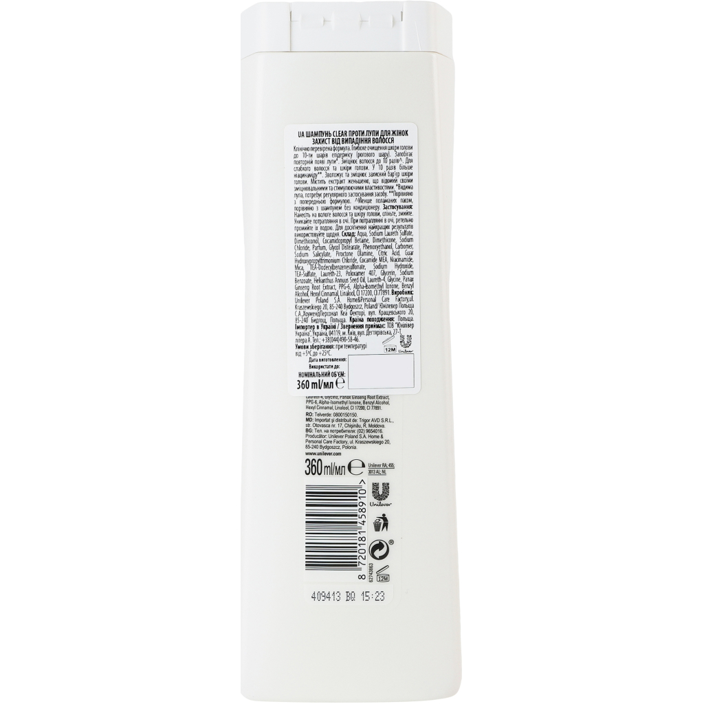 Шампунь Clear Проти лупи для жінок Захист від випадіння волосся – це ефективний засіб, який допомагає боротися з лупою та запобігає випадінню волосся. Спеціально розроблений для щоденного використання, шампунь підходить для всіх типів волосся, забезпечуючи їм належний догляд та захист.