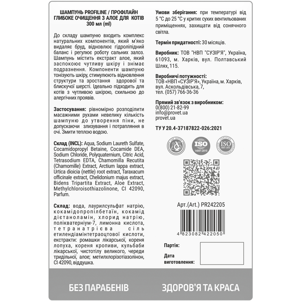 Шампунь для тварин ProVET Профілайн глибоке очищення з алое для кішок 300 мл – це ідеальний засіб для догляду за шерстю ваших улюбленців. До складу шампуню входить комплекс натуральних компонентів, які м’яко виводять бруд, відновлюють гідроліпідний баланс та регулюють роботу сальних залоз. Екстракт алое заспокоює чутливу шкіру та знімає подразнення, що робить його ідеальним для котів із чутливою шкірою.