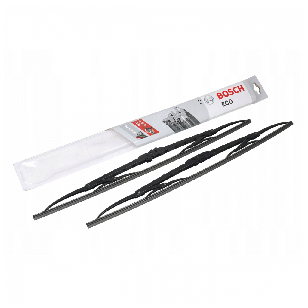 Автомобільні двірники серії Bosch ECO були випущені легендарною компанією, як бюджетна лінійка. Головна їхня перевага полягає в невисокій ціні і гідній якості. Каркас двірника виконаний з металу високої якості. Для захисту від корозії, всі металеві частини склоочисника покриті подвійним шаром порошкової фарби.