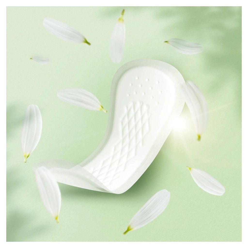 Naturella представляє щоденні прокладки Сamomile Light у зручній упаковці з 20 штук. Цей продукт ідеально підходить для щоденного використання, забезпечуючи комфорт та надійність протягом дня. Прокладки мають поглинання 1 крапля, що робить їх ідеальними для легкого дискомфорту.