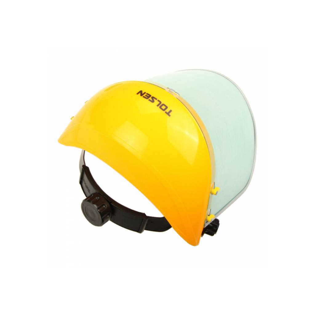 - Щит закруглюється навколо обличчя, щоб забезпечувати широку зону огляду та захисту;