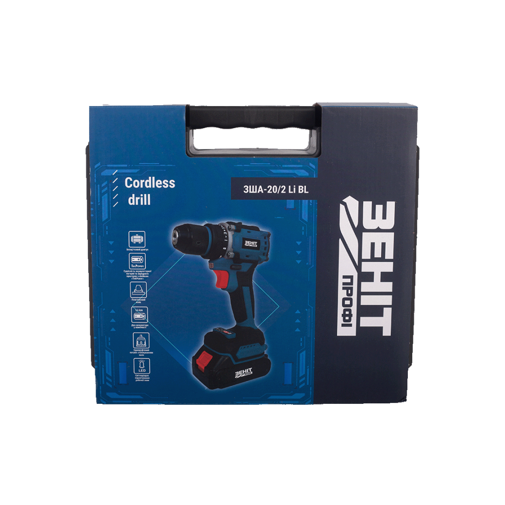 Шуруповерт Зеніт Профі ЗША-20/2 Li BL, 20V TekPower, 2×1.5Ah (854605)