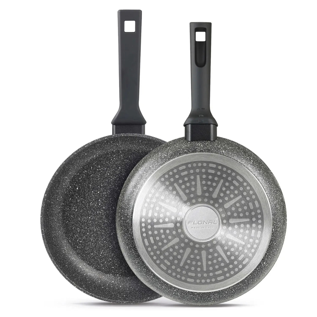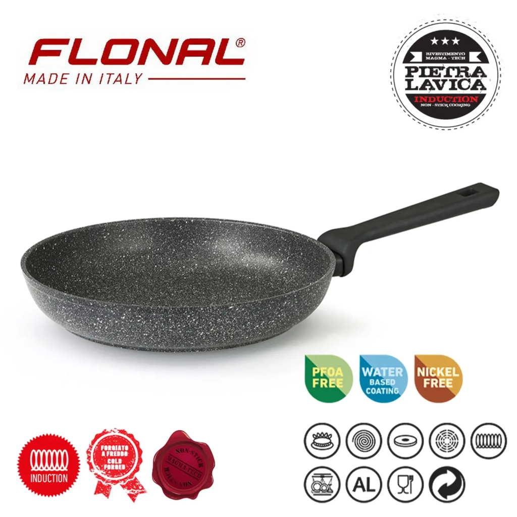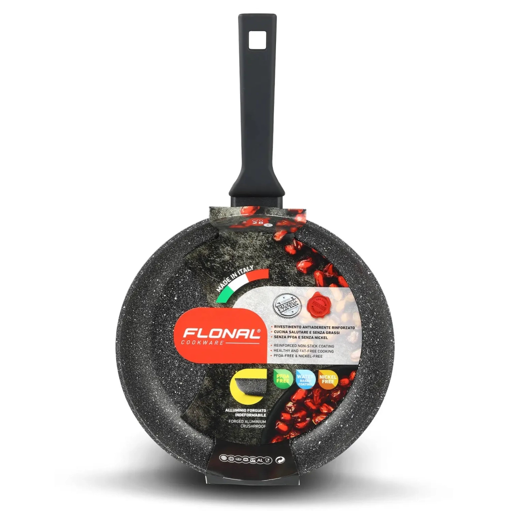 Сковорода Flonal Pietra Lavica 28 см (PLIPP2880) – це ідеальний вибір для приготування смачних страв. Завдяки антипригарному покриттю Magma-Tech, яке містить срібні мінеральні слюди, сковорода має не лише естетичний вигляд, але й високу стійкість до зношування. Екологічно чисте покриття не містить шкідливих речовин, що робить його безпечним для здоров’я. Потовщені стінки та багатошарове дно забезпечують рівномірний розподіл тепла, що дозволяє готувати різноманітні страви, від простих до складних. Феромагнітне дно робить сковороду сумісною з усіма типами плит, включаючи індукційні. Алюмінієвий ободок підвищує її міцність, а ергономічна ручка забезпечує зручність використання. Зовнішнє антипригарне покриття спрощує догляд за сковородою, роблячи її ідеальним помічником на кухні.