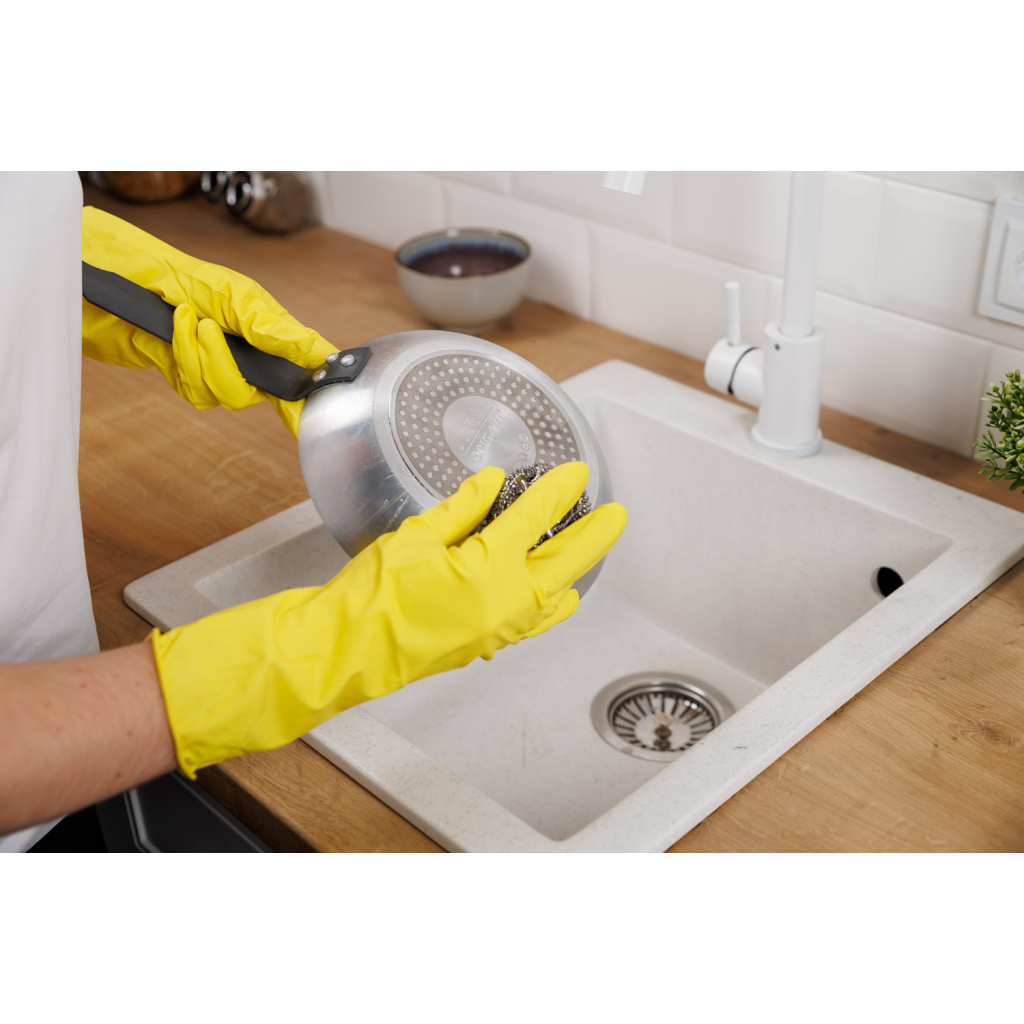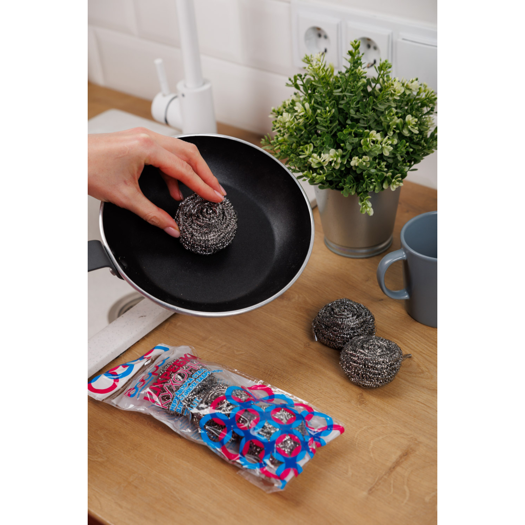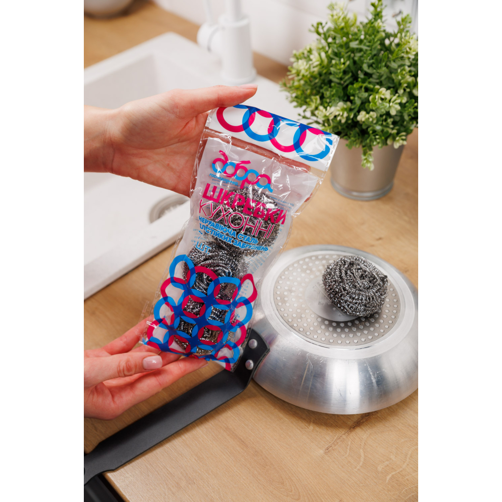 Ці скребки виготовлені з високоякісної сталі, що забезпечує їхню довговічність та стійкість до корозії. Скребки Добра Господарочка ідеально підходять для очищення каструль, сковорідок, плит та інших кухонних приладів. Їх зручна форма дозволяє легко досягати важкодоступних місць, а компактний розмір робить їх зручними для зберігання. Обираючи ці скребки, ви отримуєте надійний та ефективний інструмент для щоденного використання.