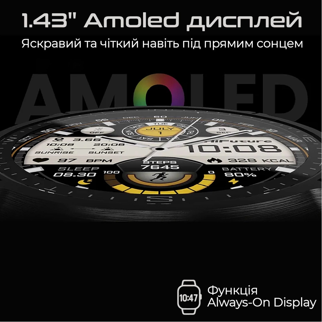 Смарт-годинник HiFuture MIX 3 black (mix3.black) створений для тих, хто цінує стиль, функціональність та надійність. Завдяки 1.43-дюймовому AMOLED дисплею з яскравим і контрастним кольоровим зображенням, ви отримаєте чіткість і яскравість картинки навіть під прямими сонячними променями.