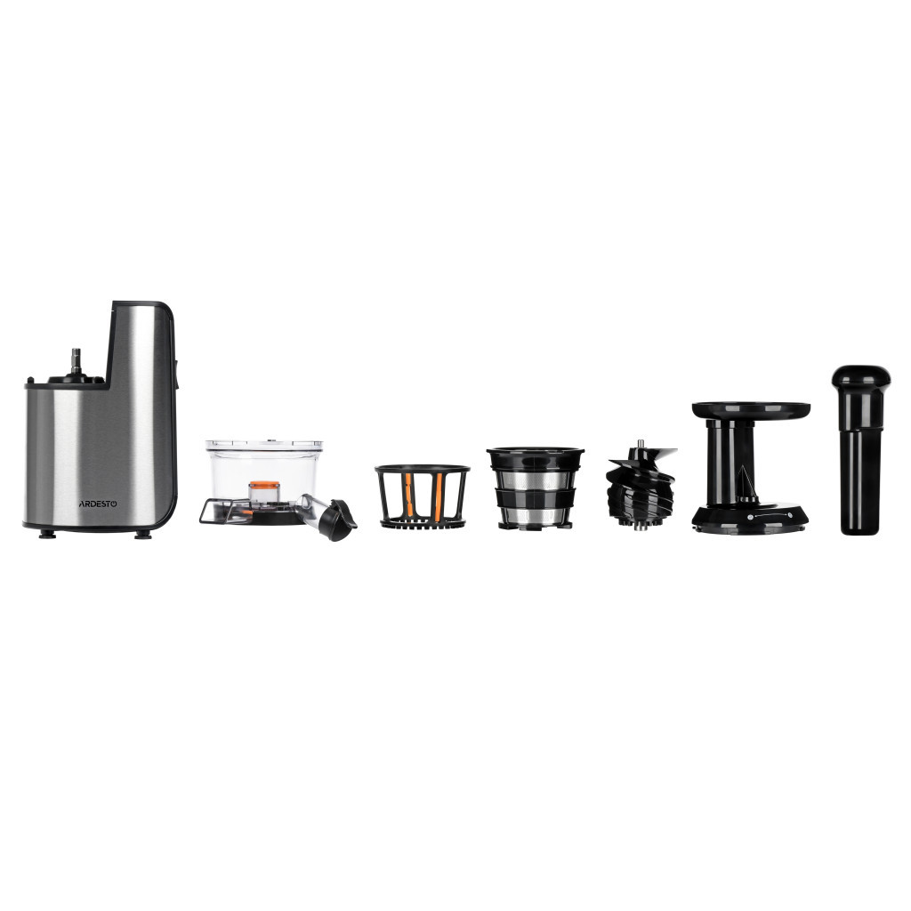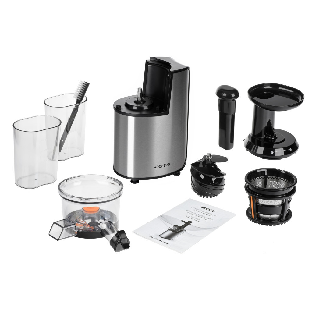 Фільтр з нержавіючої сталі. Ardesto JEG-1330S – шнекова соковижималка з компактними габаритами, що дозволить її використовувати навіть на маленьких кухнях. Має стильний, сучасний дизайн, благородія чому, відмінно буде виглядати на будь-якій кухні. Оснащена фільтром з нержавіючої сталі в циліндрі, трубка з випуску соку має протиковзке покриття. Електродвигун постійного струму з малою швидкістю стискання забезпечує більш високу вироблення соку і більш низький рівень шуму.