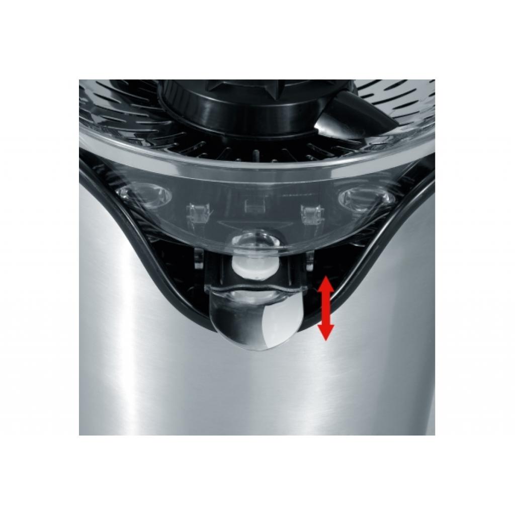 Така технологія дозволяє не цідити рідина в резервуар, а зливати її безпосередньо в стакан. Це дуже зручно, але вимагає особливої форми зливного носика. Представлена модель соковижималки повністю відповідає цьому критерію.