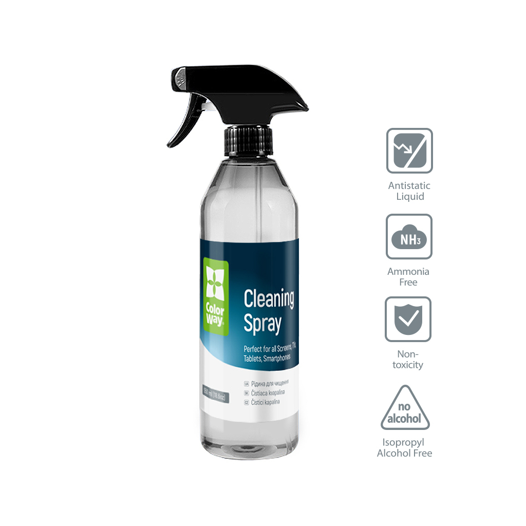 Чистячий набір ColorWay для делікатного очищення всіх типів екранів: TВ, моніторів, планшетів, ноутбуків та смартфонів. Очищає пил і жир на різних електронних пристроях, не залишаючи розводів, залишків, ворсинок і статичної електрики. Нетоксичний та безпечний рідина – не містить спирту, аміаку та запаху, що робить її абсолютно безпечною для екранів різного типу, зокрема LCD, LED і OLED дисплеїв, та безпечна для дітей, домашніх тварин та не шкодить навколишньому середовищу. Цей засіб ефективно очищує, не залишаючи подряпин чи розводів, що дозволяє досягти ідеальної якості зображення без пошкодження поверхонь. У комплекті також є дві мікрофіброві серветки, які делікатно очищають екрани та полірують їх до блиску. Конструкція розпилювача ефективно запобігає протіканню, запобігає випадковому розбризкуванню. Дві різні серветки для більш ретельного очищення.