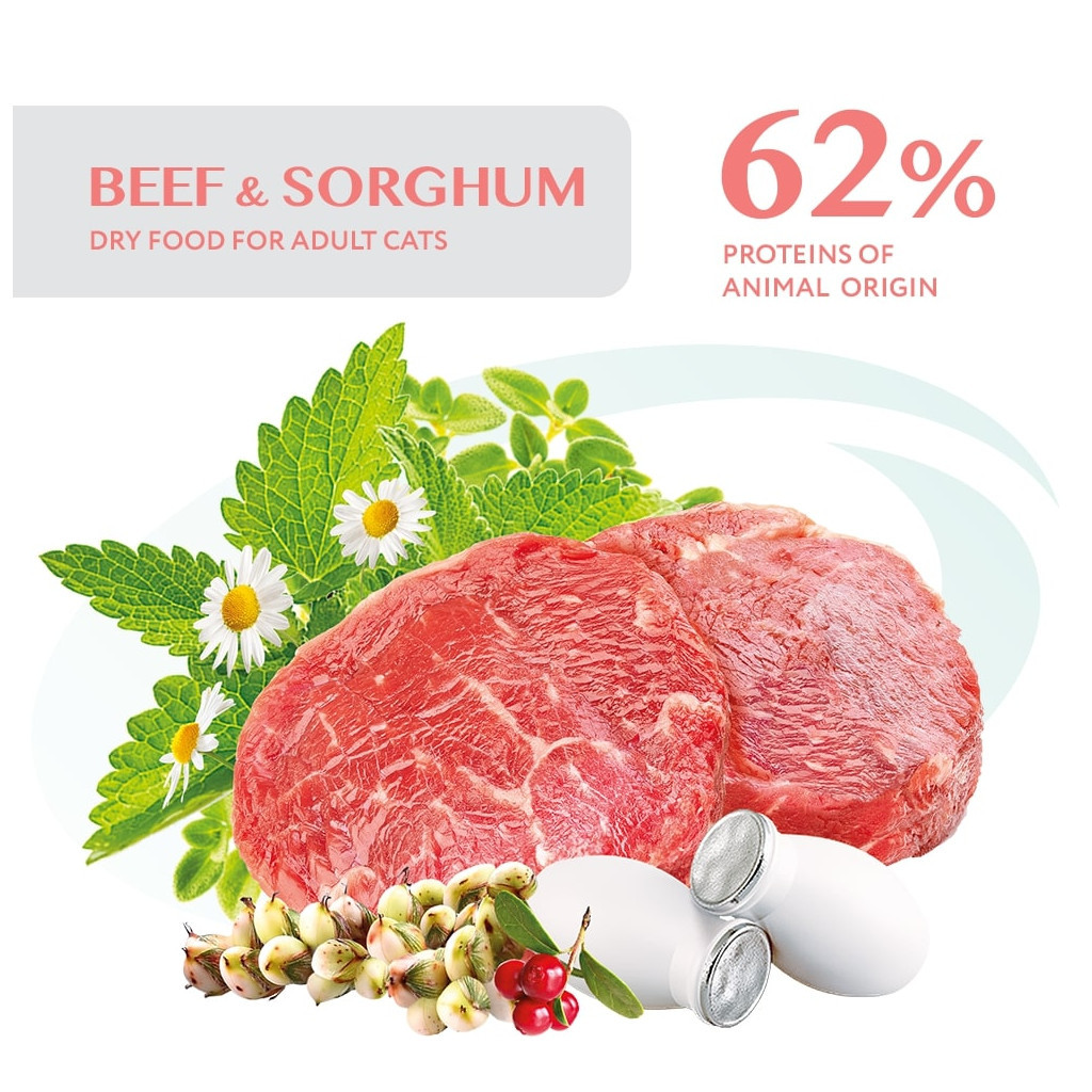 Упаковка містить 4 кг корму, призначеного для кішок старше 12 місяців усіх порід. Основні інгредієнти – яловичина та сорг, які сприяють зміцненню м'язів та підтримці імунної системи. Корм виготовлений в Україні, що гарантує високу якість продукції.