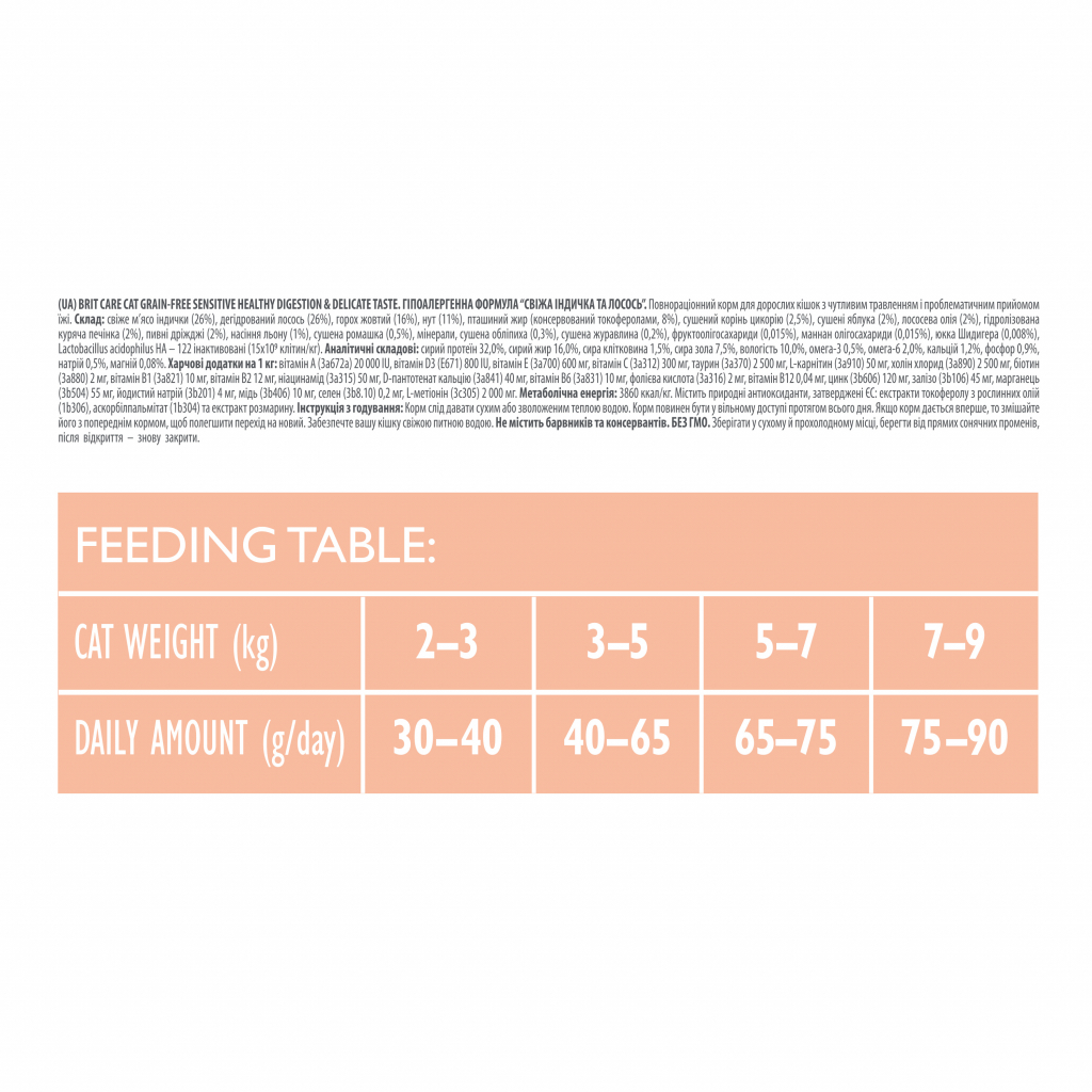 - Основу корму становлять інгредієнти суперпреміум класу: високоякісна індичка та лосось.