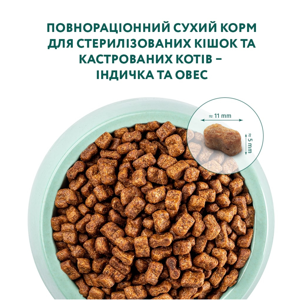 - Основою раціону є індичка, яка забезпечує вашу кішку легкозасвоюваним протеїном, важливим для підтримки здорового м’язового тонусу.