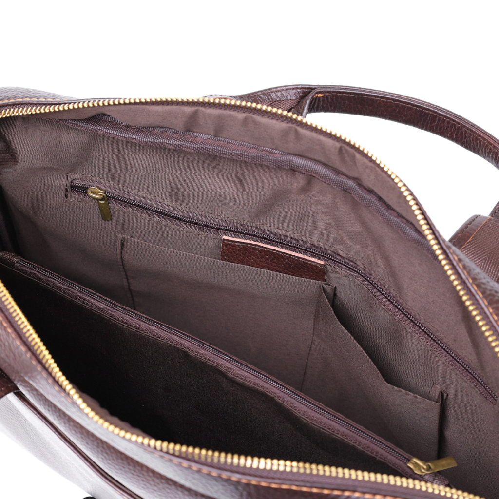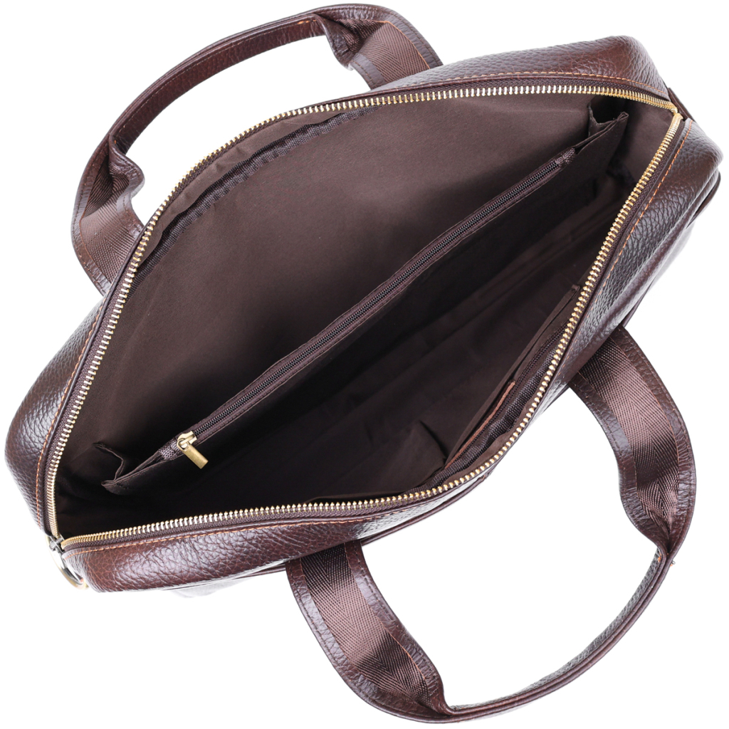 Сумка оснащена двома шкіряними ручками та знімним текстильним ременем для переносу на плечі. Цей аксесуар стане чудовим вибором для ділових людей, адже він поєднує в собі елегантність і практичність. Внутрішній простір сумки є простором для зберігання всіх необхідних речей, а зовнішні кишені дозволяють швидко отримати доступ до важливих предметів. Фактура виробу – зерниста, приємна на дотик, що підкреслює його якість та стиль.