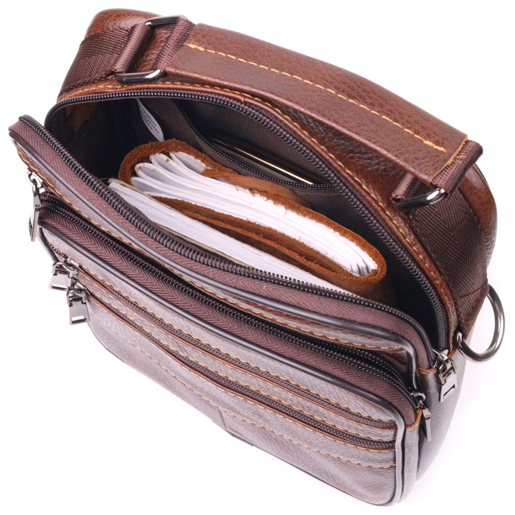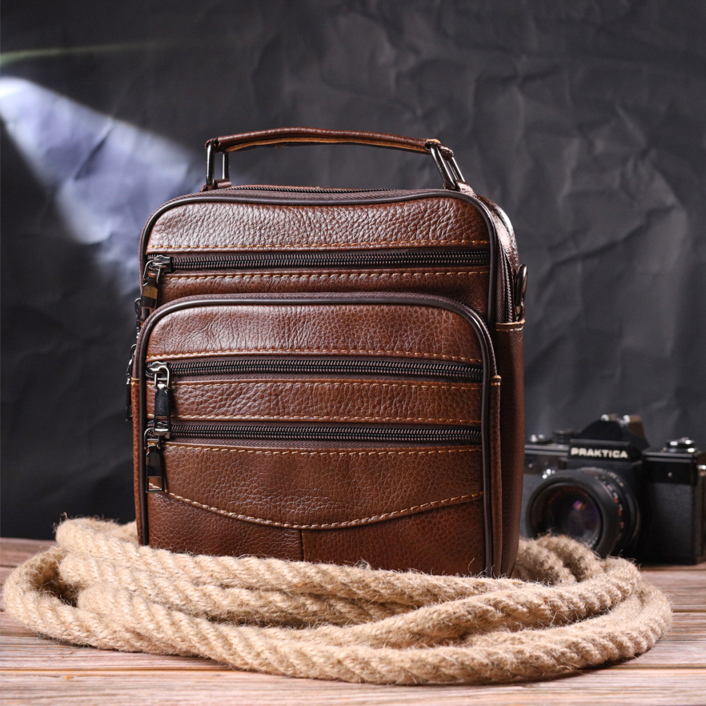 Сумка Vintage Чоловіча з натуральної шкіри Коричнева (21275) – це стильний та функціональний аксесуар, який ідеально підходить для сучасного чоловіка. Виготовлена з високоякісної натуральної шкіри, ця сумка поєднує в собі елегантний діловий стиль та міську практичність. Вона стане відмінним вибором для повсякденного використання, роботи або подорожей.