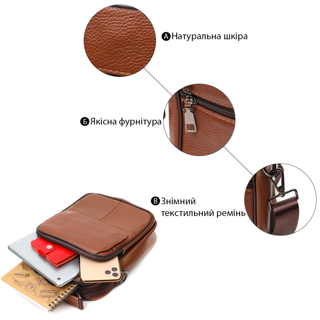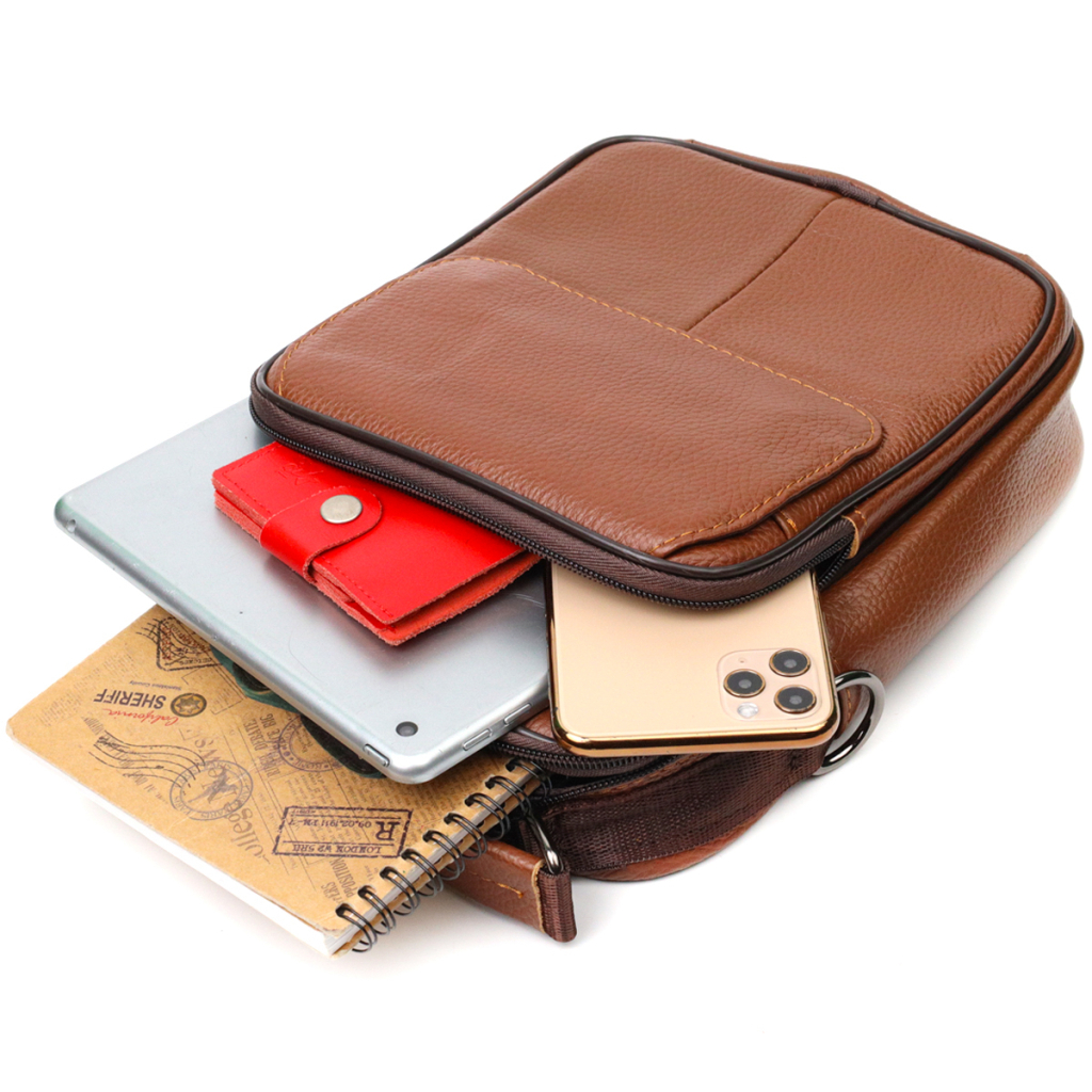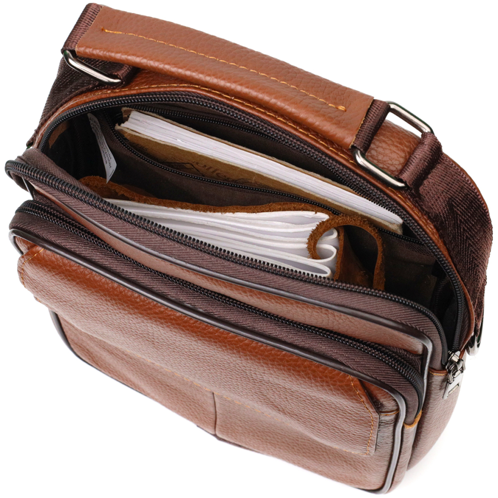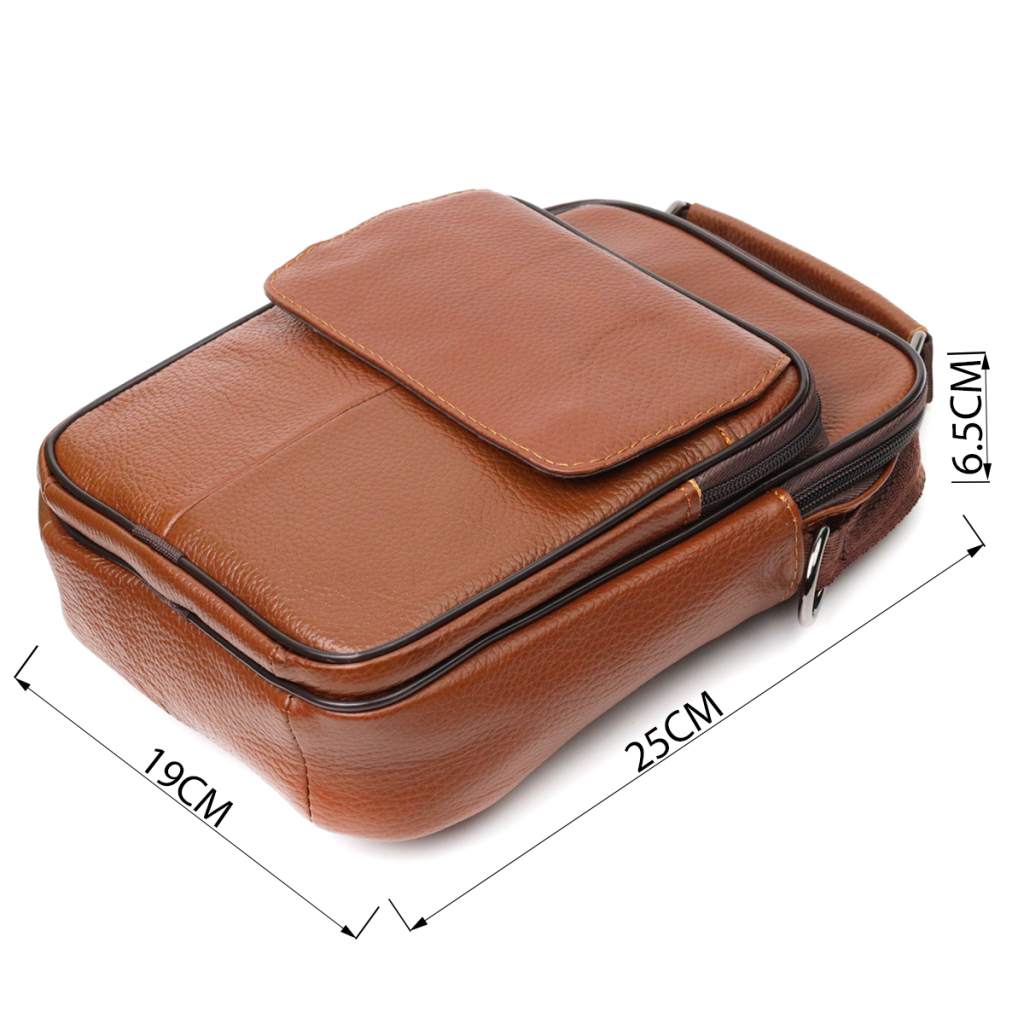 Сумка Vintage Месенджер з натуральної шкіри Світло-коричнева (21951) – це стильний та практичний аксесуар, який підходить для будь-якого чоловіка. Виготовлена з високоякісної натуральної шкіри, вона забезпечує не тільки елегантний вигляд, але й довговічність. Основні характеристики: