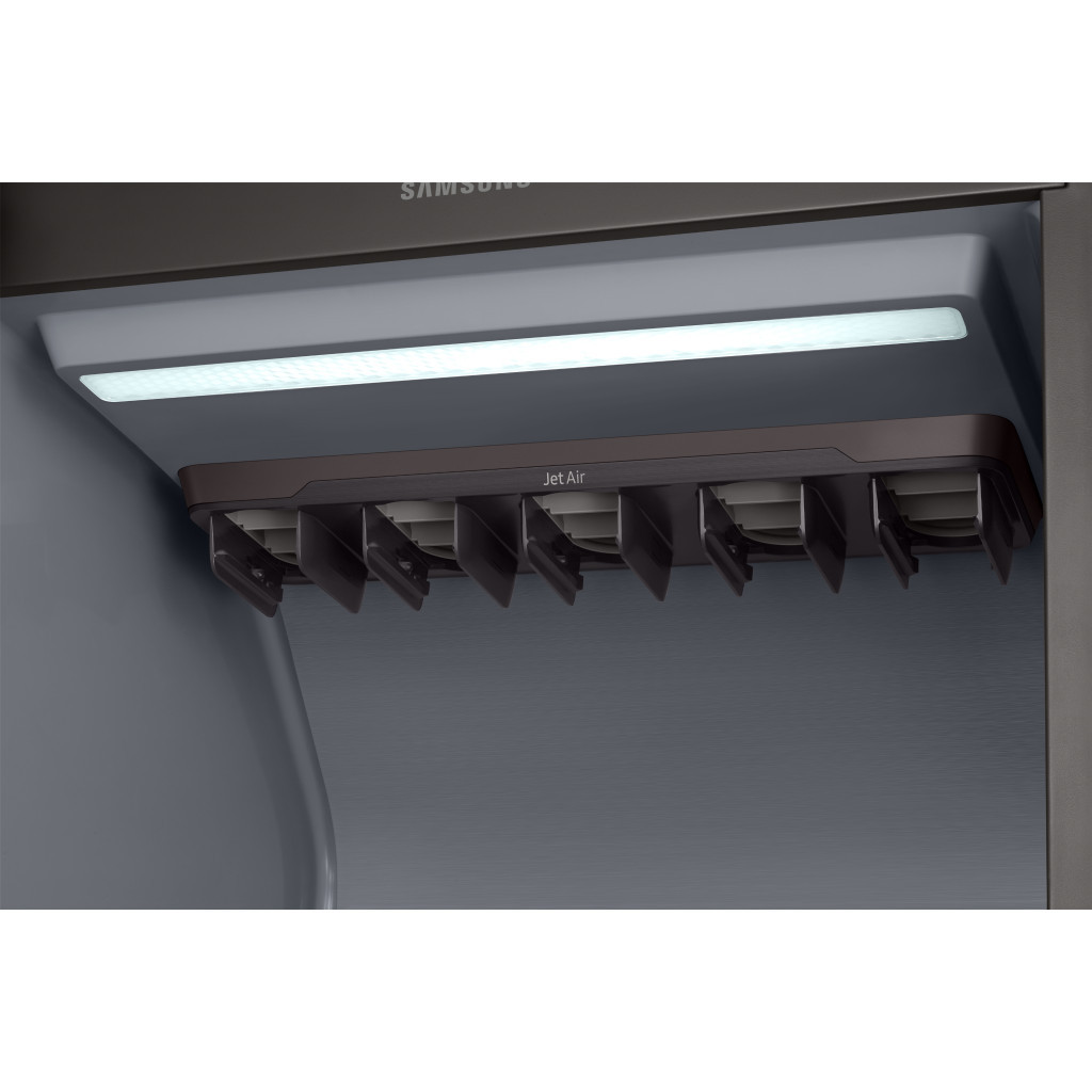 Технологія Jet Steam забезпечує гігієнічне очищення вашого одягу, завдяки системі потужних потоків високотемпературної пари Jet Air, яка проникає глибоко всередину тканин і усуває 99.9% вірусів та бактерій, 100% пилових кліщів, 99% запахів та 99% інших речовин*. Функція “Догляд за складками” використовує JetSteam та JetAir для розгладження складок на одязі, а також функція JetSteam видаляє запахи**.