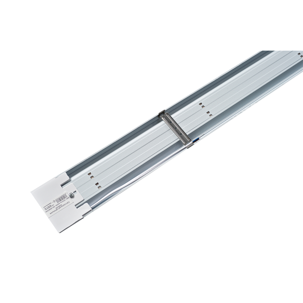 Основні технічні характеристики включають: тип світильника – настінний та стельовий, колірна температура – 6400 К, що забезпечує холодне біле світло, робоча температура – від -20°C до +40°C, термін служби – до 30 000 годин, а також клас захисту IP20. Світильник має розміри 1200 х 75 х 25 мм та живиться від мережі 220 – 240 В.