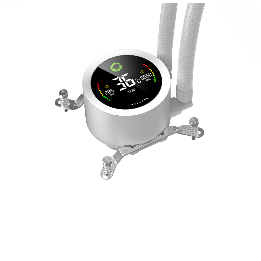Система обладнана гідродинамічними підшипниками (FDB Bearing), що забезпечує тривалий термін служби та низький рівень шуму. Повітряний потік досягає 58.8 CFM, а тиск – 1.82 мм H2O, що гарантує ефективне охолодження. Розміри радіатора складають 275 x 120 x 52 мм, а вентиляторів – 120 x 120 x 25 мм. Gamemax IceBurg 240 Digital WH – це надійний вибір для тих, хто цінує продуктивність і стиль у своєму ПК.