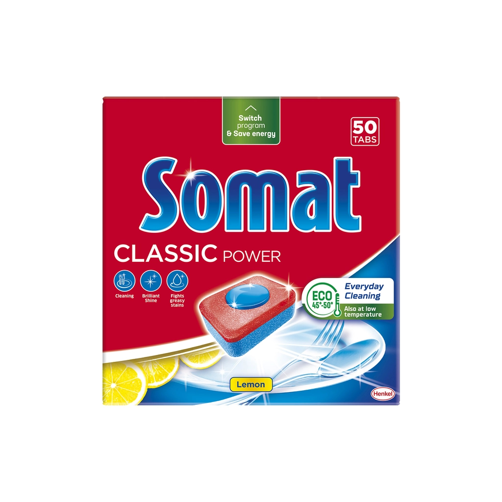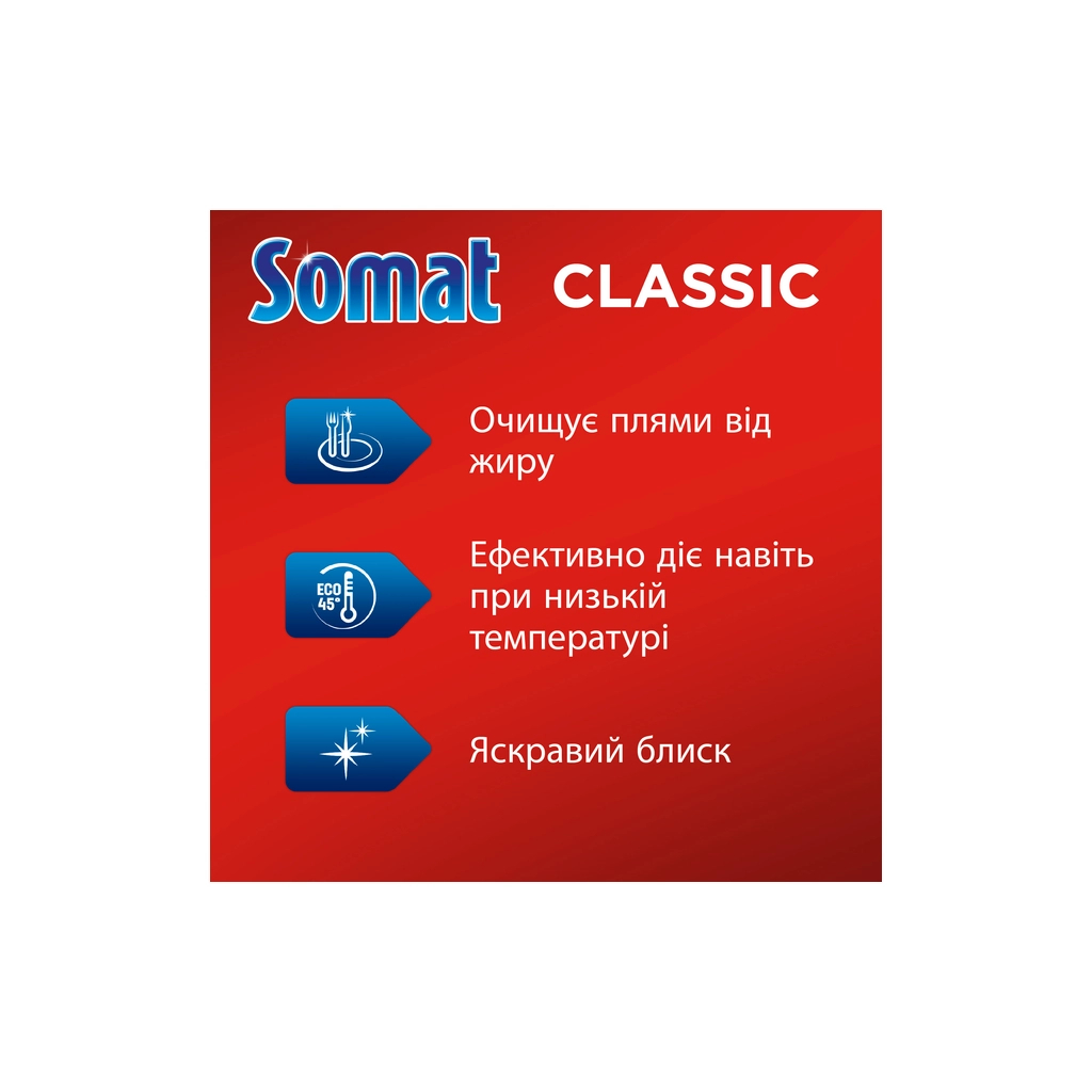 Таблетки Somat Classic надають потужне очищення посуду від щоденних забруднень.