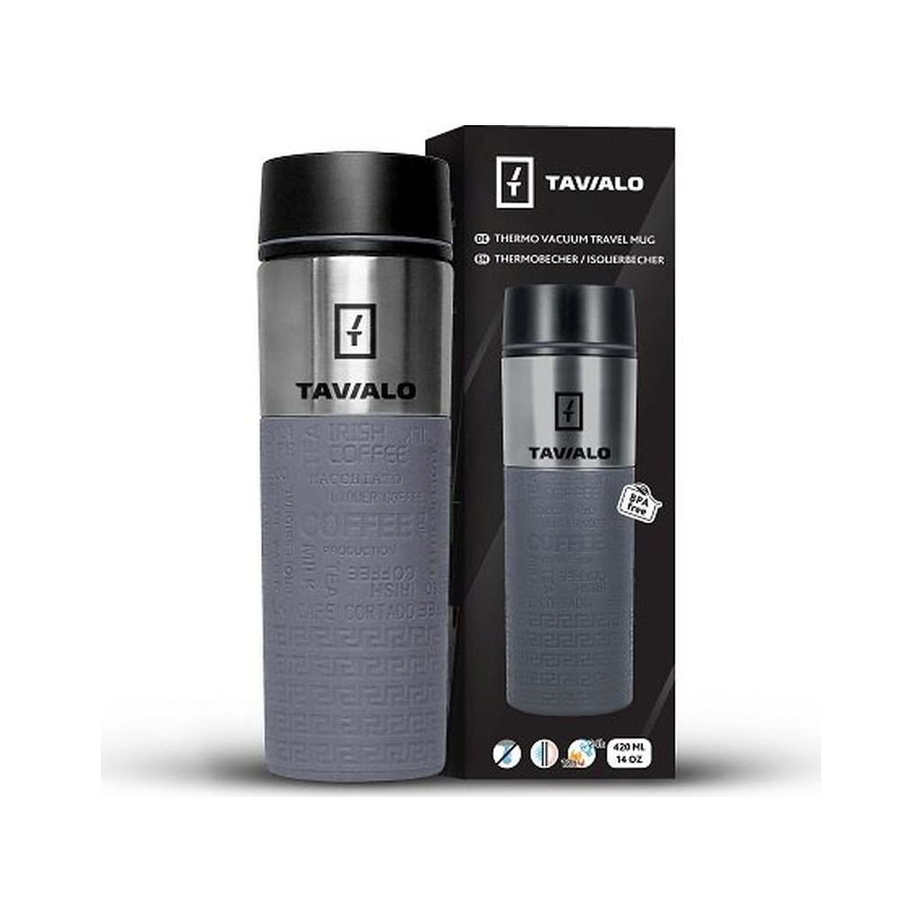 Термокружка Tavialo – ідеальний супутник для тих, хто цінує комфорт та стиль. Об'ємом 420 мл, вона підходить для чаю, кави та інших напоїв, зберігаючи їх температуру протягом тривалого часу. Сірий колір надає їй елегантного вигляду, що підійде як для чоловіків, так і для жінок, а також для дітей.