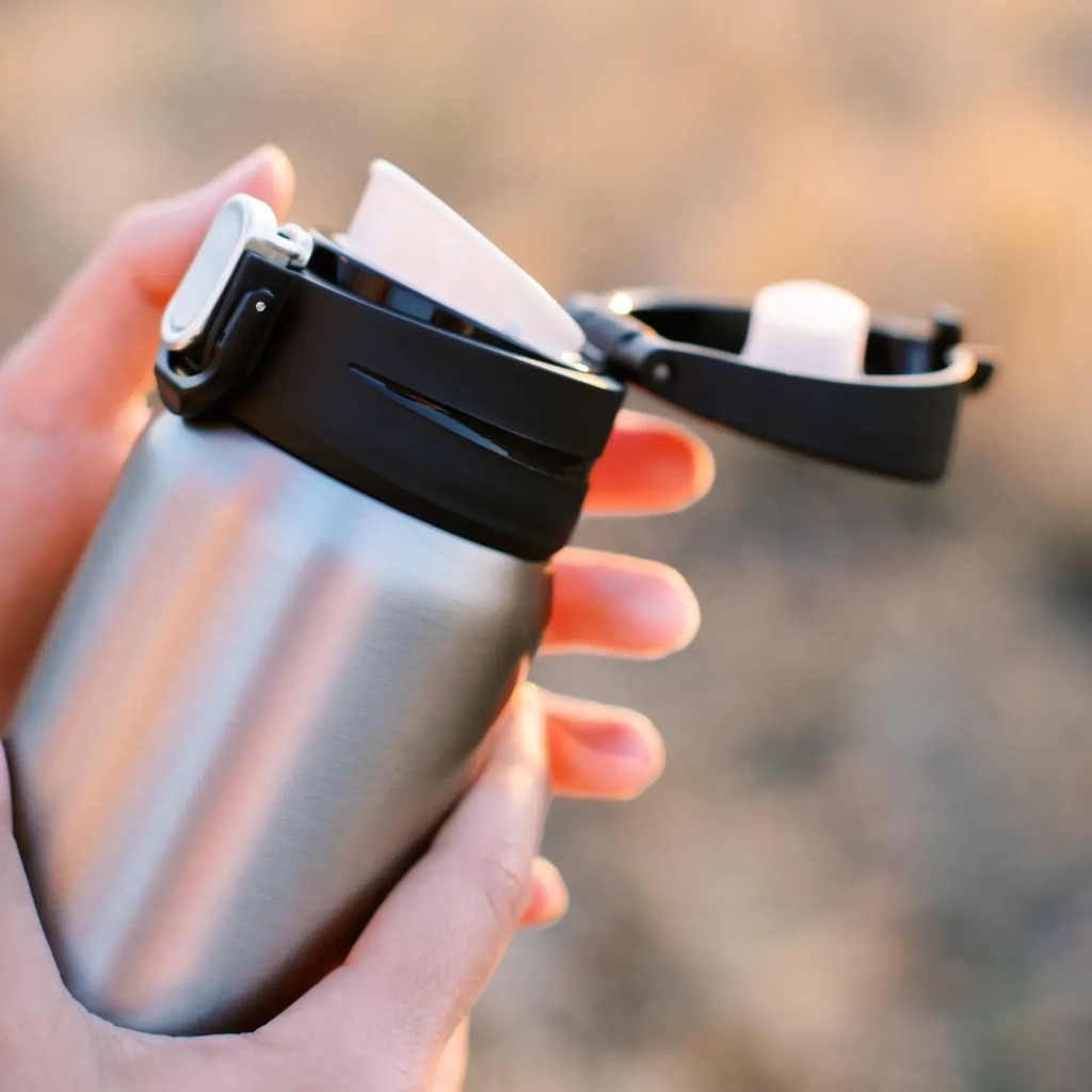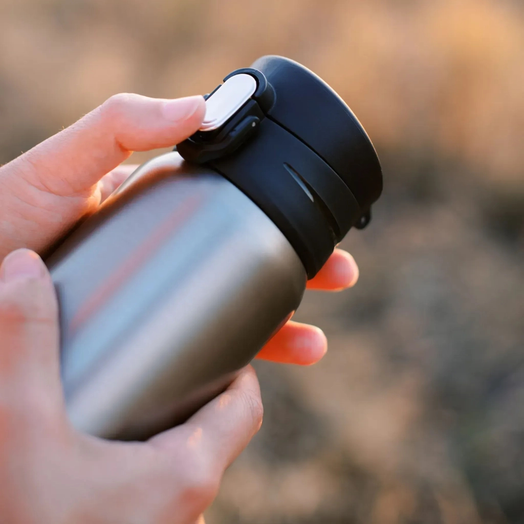 Tribe Motion 0,45 л це компактна та легка термокружка з харчової нержавіючої сталі SUS 304, створена для щоденного використання в місті, під час подорожей та у автомобілі: вона зручно вміщується в рюкзак, сумку чи підсклянник авто, а широкий отвір горловини дозволяє додавати кубики льоду у спеку. Кришка з одним рухом руки відкривається для пиття, оснащена фіксатором, який запобігає випадковому розливанню, а розбірний клапан полегшує догляд та миття. Для додаткового захисту корпусу можна використовувати . Особливості термогорнятка Motion 0,45: Двостінна конструкція для ефективного утримання температури Герметична кришка з фіксатором від випадкового