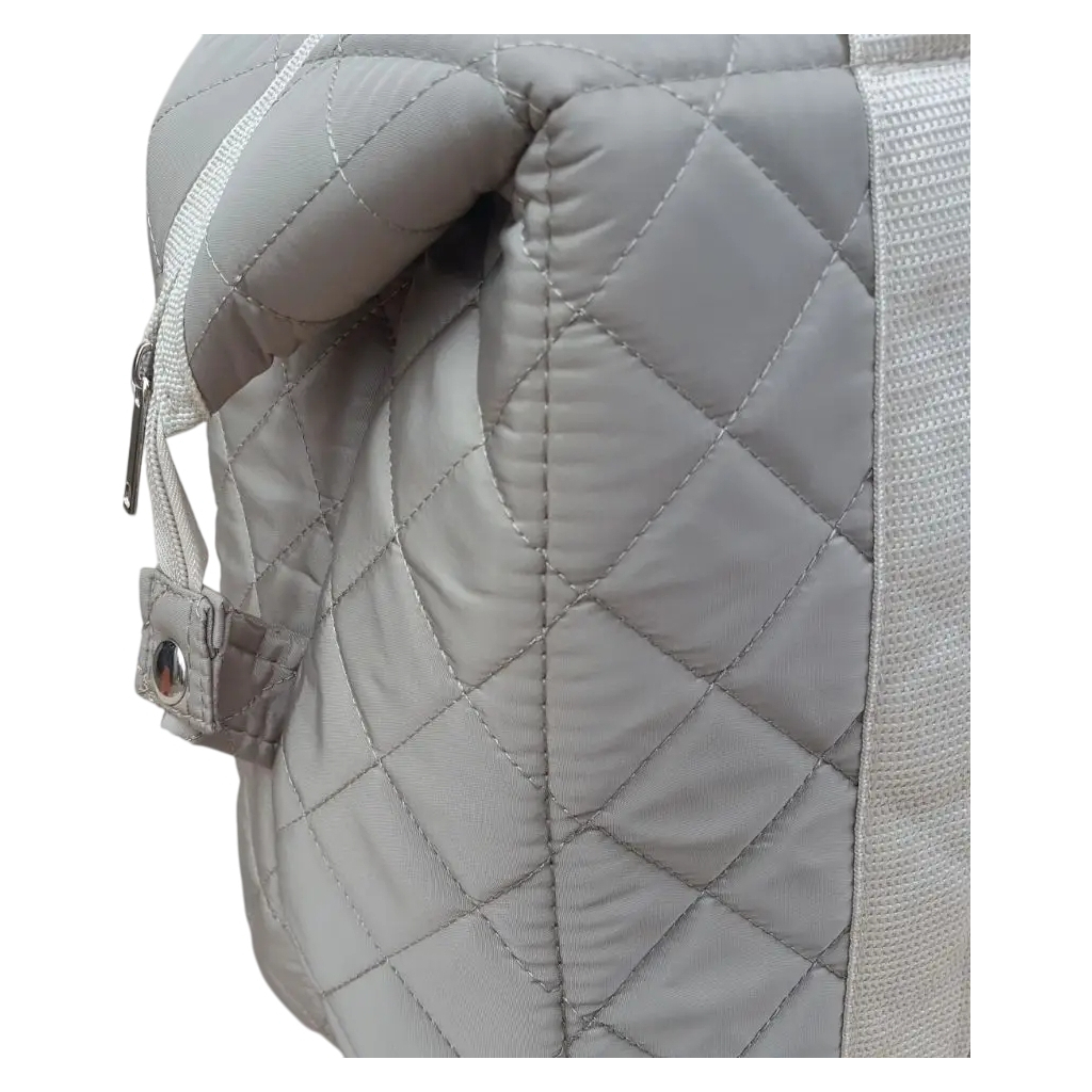 Сумка має дві подовжені ручки, що забезпечують комфортне перенесення, а бокові кнопки-застібки дозволяють регулювати об’єм в залежності від кількості вмісту. Легко очищується вологою серветкою, що робить її практичною у догляді. Стильний бежевий колір гармонійно поєднується з будь-яким стилем одягу чи спорядження.