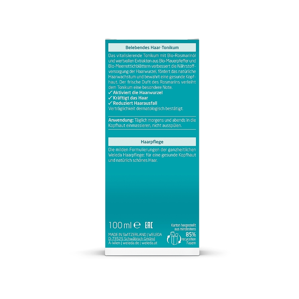 Тонік для волосся Weleda Стимулятор при втраті волосся з екстрактом розмарину об’ємом 100 мл – це ідеальний засіб для тих, хто прагне відновити здоров’я своїх волосся. Нормальне зростання волосся є показником доброго здоров’я, але стрес та несприятливі зовнішні фактори можуть негативно впливати на їх стан. Цей зміцнюючий тонік активує ріст волосся, роблячи їх міцними, здоровими та густими.