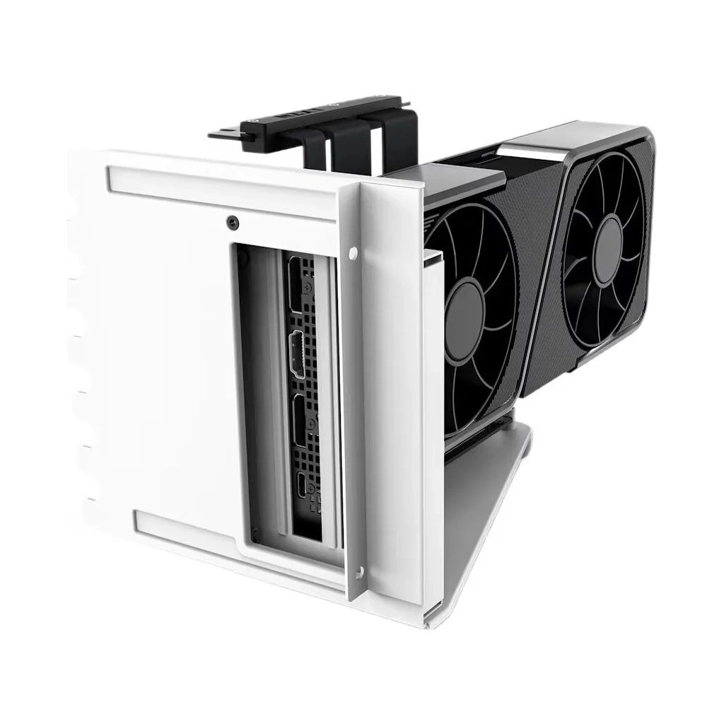 Тримач плат NZXT Vertical GPU Mounting Kit Black (AB-RH175-W1) дозволяє встановити графічний процесор вертикально, забезпечуючи достатню кількість простору для охолодження та стабільності. Цей міцний сталевий кронштейн, розроблений для серій NZXT H5, H6, H7 та H9, надійно утримує графічні процесори вертикально, запобігаючи їх провисанню.