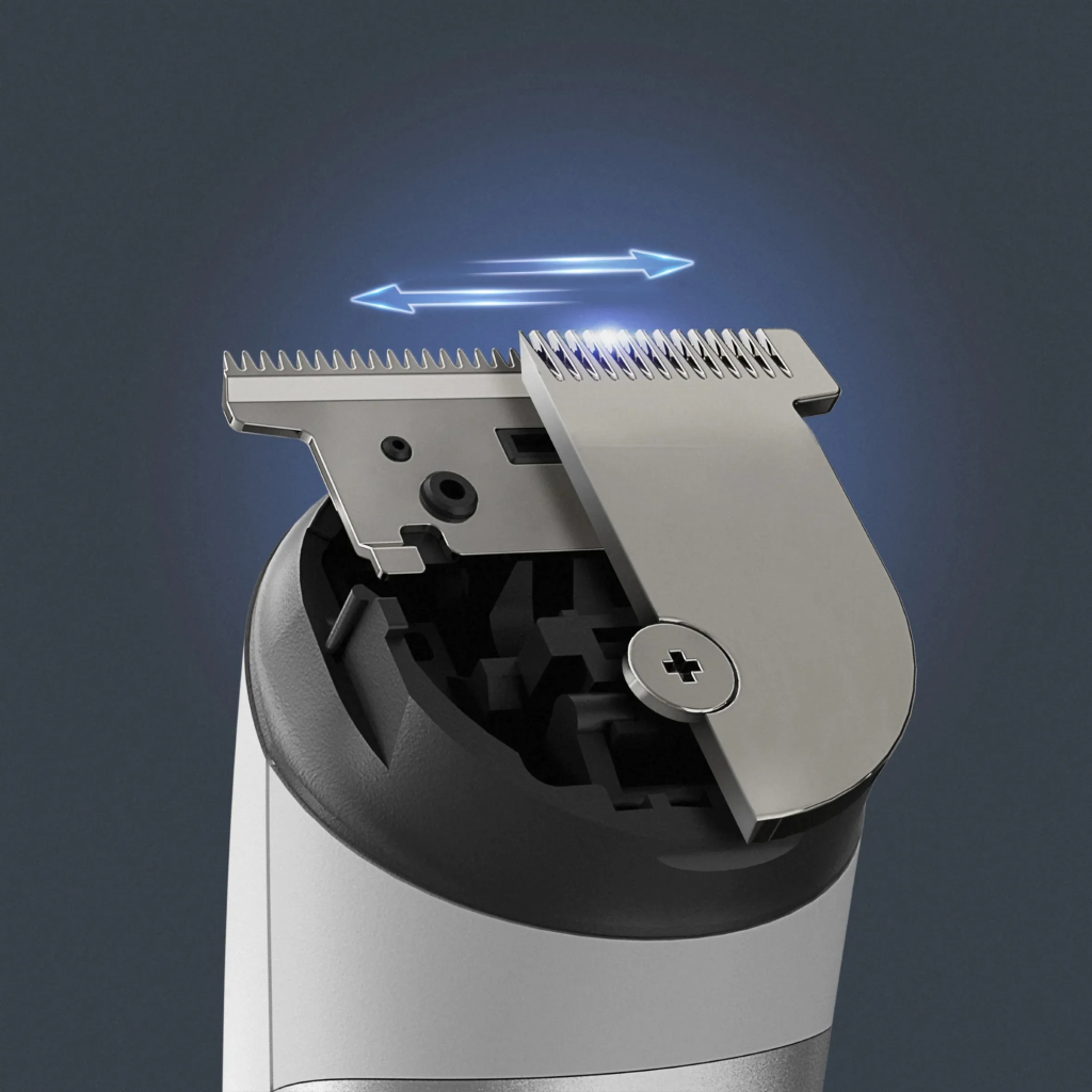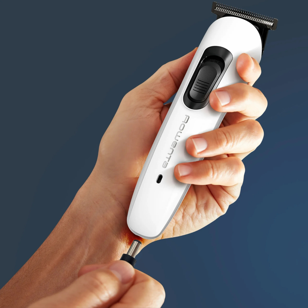 Серед особливостей Rowenta TN8934E0 варто відзначити самозагострювальні леза, які забезпечують тривалу ефективність, а також можливість вологого очищення для легкого догляду за пристроєм. У комплекті ви знайдете щіточку для чищення, бритву та зарядний пристрій, що робить цей тример ще більш зручним у використанні. Вага пристрою складає всього 240 г, а стильний білий колір додає елегантності.