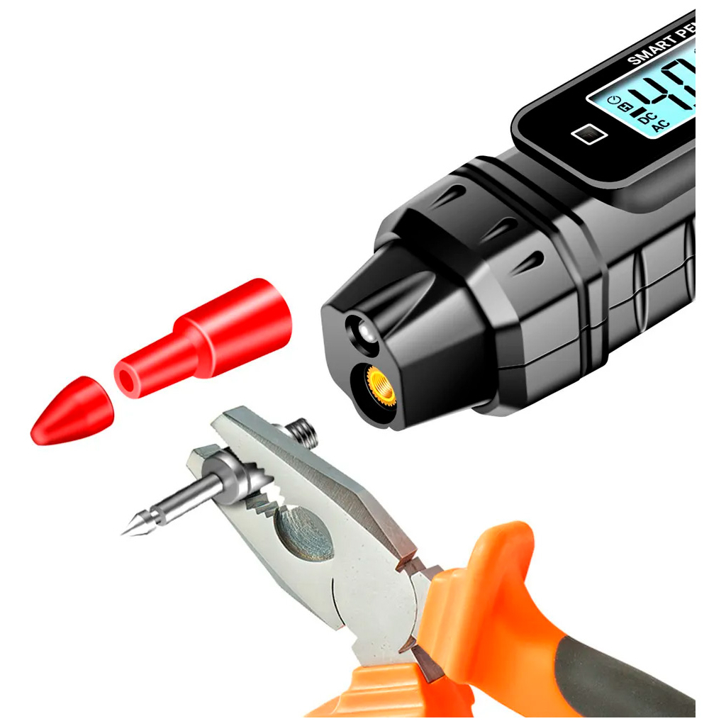 - Функція безконтактного виявлення напруги (NCV) дозволяє безпечно визначити наявність електричної напруги у проводах та пристроях.