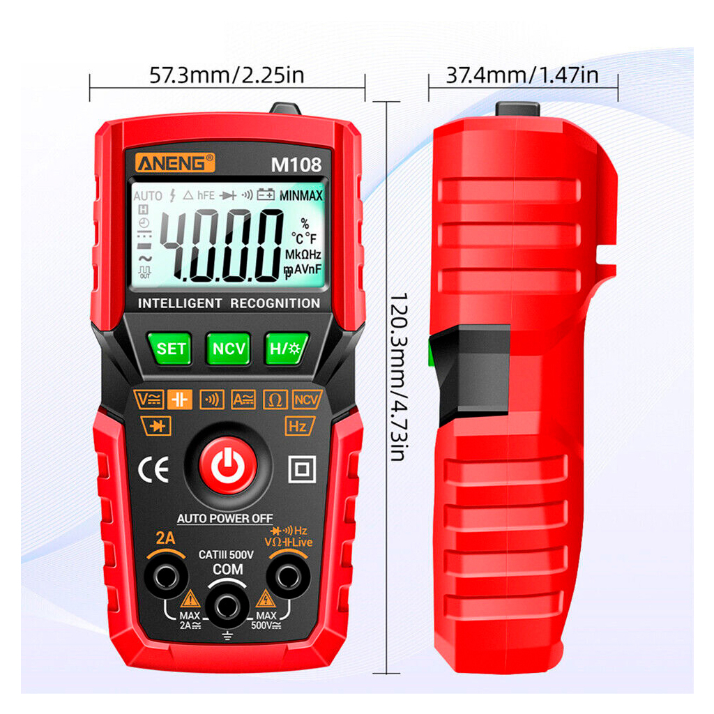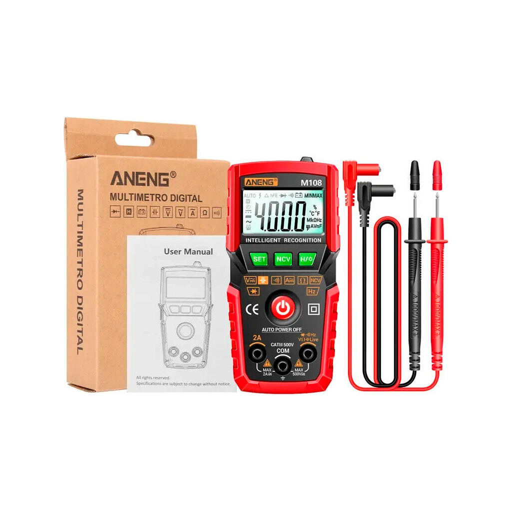 Цифровий мультиметр ANENG M108 – це надійний інструмент для вимірювання електричних параметрів. Завдяки ЖК-дисплею, ви зможете легко зчитувати показання. Мультиметр підтримує різні види вимірювань, включаючи: