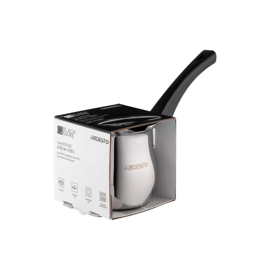 Ця турка має ряд особливостей, які роблять її зручною у використанні. Завдяки можливості миття в посудомийній машині, ви зможете легко підтримувати її в чистоті. Бакелітова ручка забезпечує зручний та безпечний захват, а стильний колір нержавіючої сталі надає елегантності. Обирайте Ardesto BLACK MARS для приготування смачної кави та насолоджуйтесь кожним ковтком!