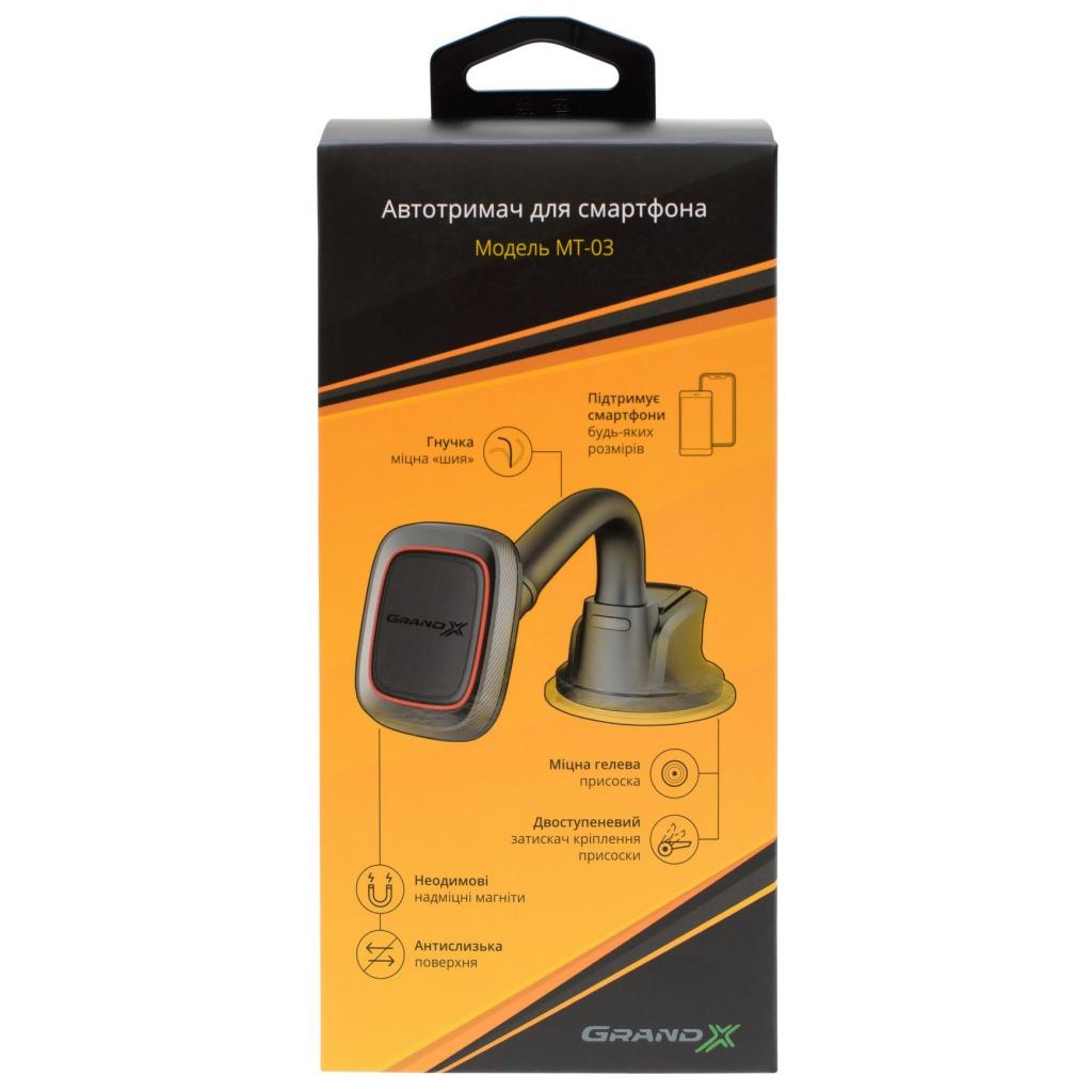 Універсальний автотримач Grand-X MT-03 – ідеальне рішення для зручного використання вашого смартфона під час поїздок. Цей автотримач обладнаний надійною полімерною присоскою, що забезпечує міцне кріплення до будь-якої гладкої поверхні. Завдяки можливості обертання на 360 градусів, ви зможете легко налаштувати кут огляду, що робить його зручним для навігації та використання додатків.