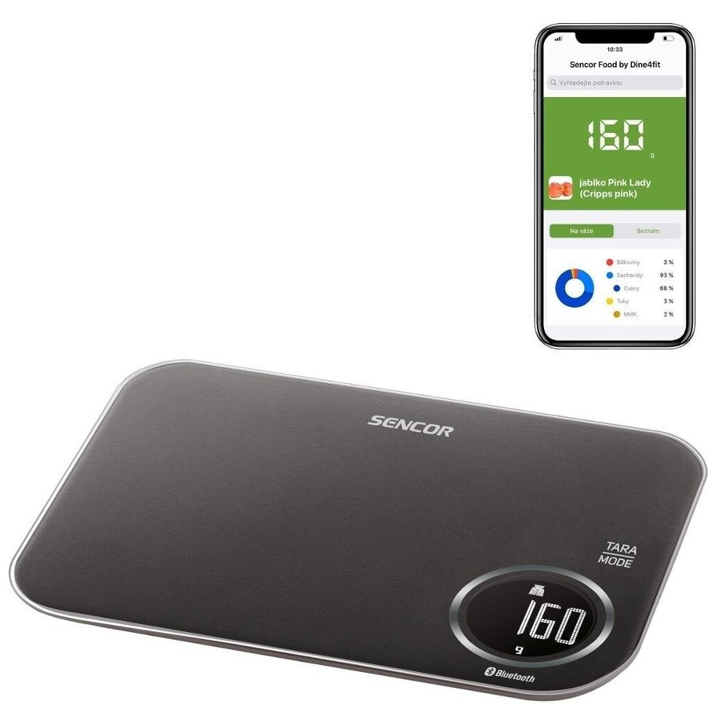 Ці розумні кухонні ваги допоможуть вам вести ідеальний облік споживання калорій та окремих компонентів їжі. Ваги оснащені програмою з базою даних Sencor FOOD, яка розроблена у співпраці з авторами популярної програми Dine4Fit.