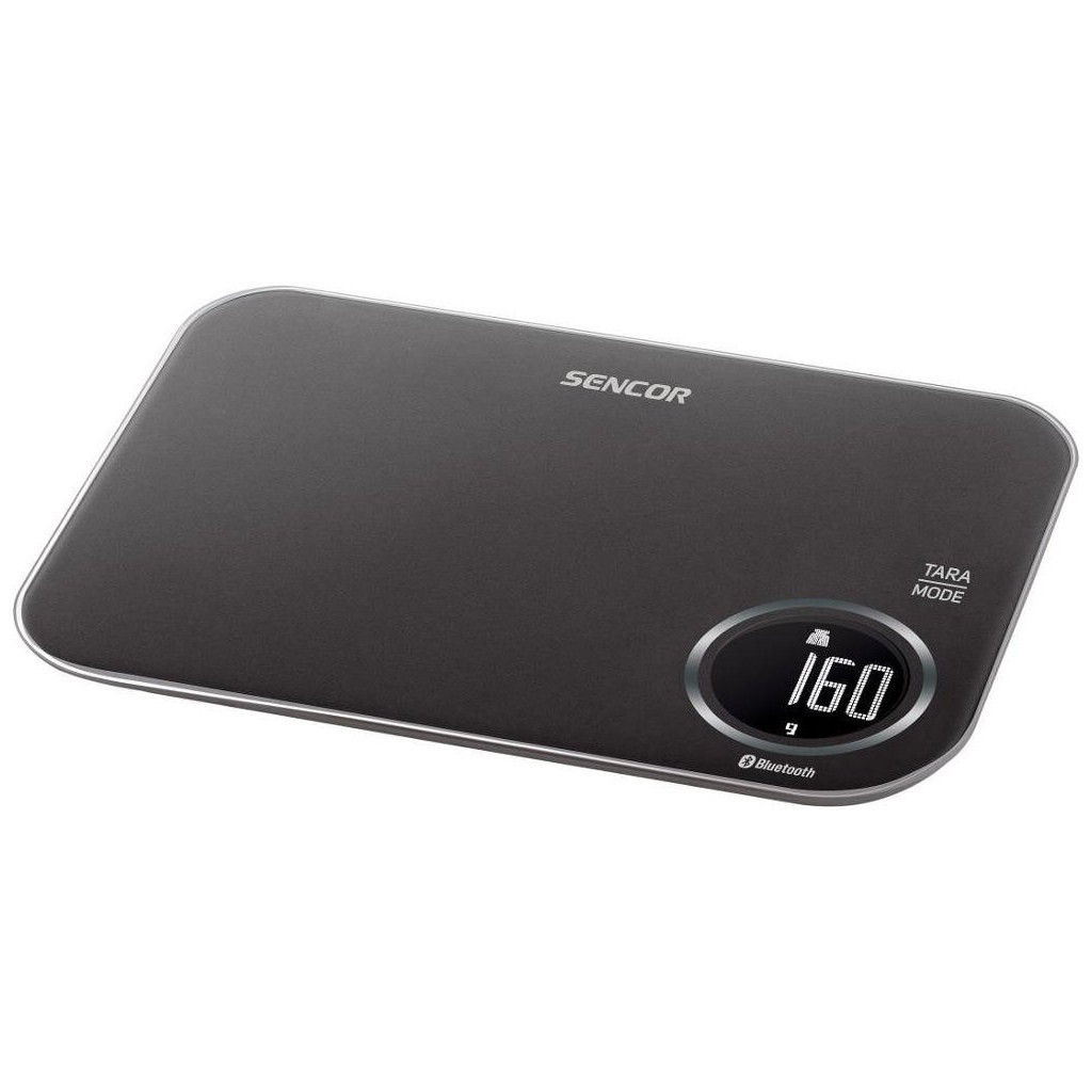 SKS 7078BK – з оригінальним додатком Sencor FOOD з багатою базою даних продуктів харчування, розробленим у співпраці з авторами Dine4Fit. Надає докладну інформацію про поживну цінність їжі (вуглеводи, білки, жири, холестерин, клітковина). РК-дисплей з білим підсвічуванням. Діапазон зважування до 5 кг (з точністю до 1 г).